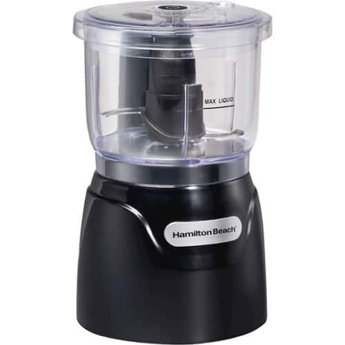 • Spend less time preparing meals and more time enjoying them with the Hamilton Beach Stack and Press 3 Cup Food Chopper. Simply stack and press to chop and mix ingredients in minutes. Includes dishwasher safe parts and oil dispenser for emulsifying.