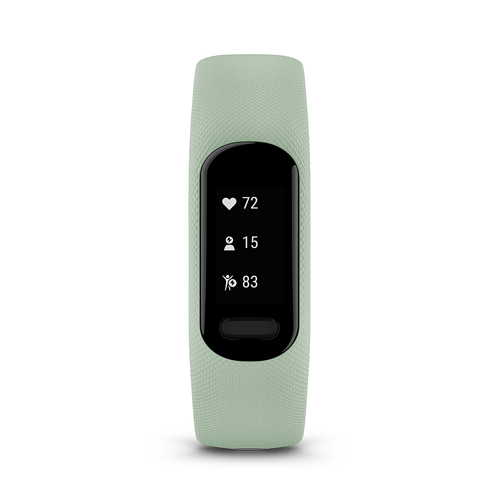 • Take charge of your health with vívosmart 5. This easy-to-use, comfortable fitness tracker comes loaded with features to track your activity all day and sleep stages all night once setup through the Garmin Connect app (This device is intended to give an estimate of your activity and metrics). Wrist-based heart rate, stress tracking, Body Battery energy monitoring and more help you stay informed while smart notifications from your paired smartphone keep you connected. Stay active with built-in sports apps that include profiles for walking, running, yoga, cardio and more. Plus, when connected to your smartphone, incident detection (during select outdoor activities) and Assistance features send a message with your live location to emergency contacts for greater peace of mind (Requires setup and your smartphone to be in an area with network coverage where data connectivity is available). With up to 7 days of battery life, vívosmart 5 gives you an uninterrupted picture of your health and can go wherever your busy schedule takes you.