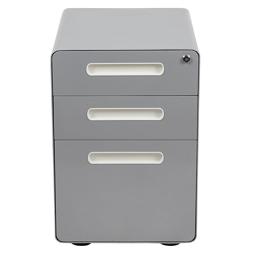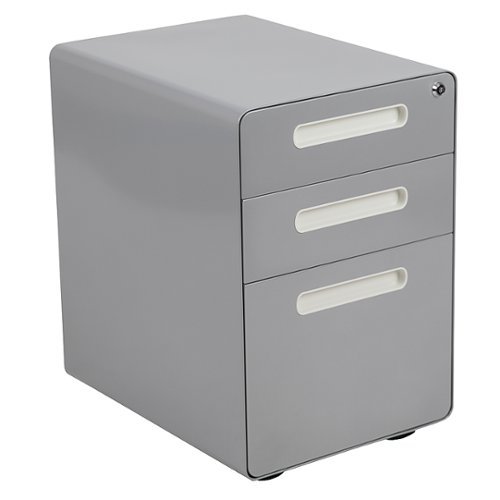 • You may love your current desk but have nowhere to store your paperwork without cluttering the desktop, insert this locking file cabinet to keep the minimalistic appearance of your modern office desk. This 3-drawer pedestal file cabinet has low set casters to keep up with the needs of a busy worker. The convenience of casters is ideal for employees who regularly file documents, allowing them the option to pull the cabinet near them while monitoring incoming emails. The modern 3-drawer mobile file cabinet has two utility drawers to hold your small office supplies, snacks, vitamins and writing utensils while the hanging file drawer holds A4, letter, legal, and F4 hanging folders. Folder longer documents such as your legal size paperwork vertically using the conversion bar. An included pencil tray keeps your small supplies neatly stored and can be used in either of the two utility drawers. Two keys are included to keep in separate locations or as a duplicate for your assistant. Inset drawer handles provide a modern appearance and a worry-free solution to loosening handle screws. Organize your office space with this mobile under desk filing cabinet that comes fully assembled and ready-to-use. This ergonomic filing cabinet is a smart solution for any workplace whether used for heavy-duty daily filing or the casual user.