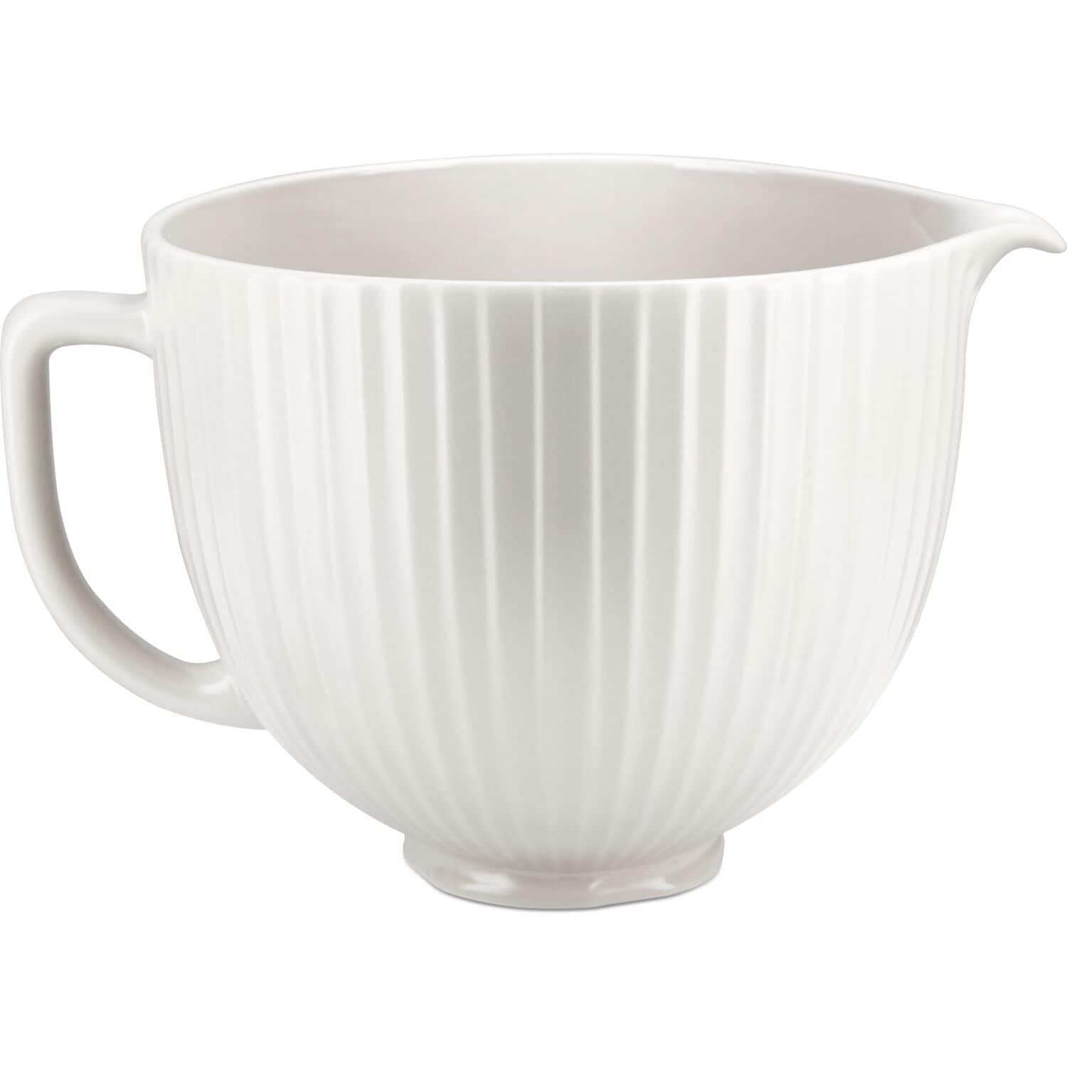 • Who says making beautiful dishes and meals has to be all form and function? Get inspired to make even more when you accessorize your stand mixer with this beautiful 5 Quart Classic Column Ceramic Bowl - with fine ribbing on a clean bright glaze, allowing for depth and dimension to take center stage. This strong-yet-beautiful ceramic bowl is freezer, microwave, dishwasher and oven-safe up to 475 degrees, and made with durable ceramic to resist chipping, cracking, crazing and staining. Fits all 4.5- and 5-quart KitchenAid Tilt-Head Stand Mixers, sold separately.
