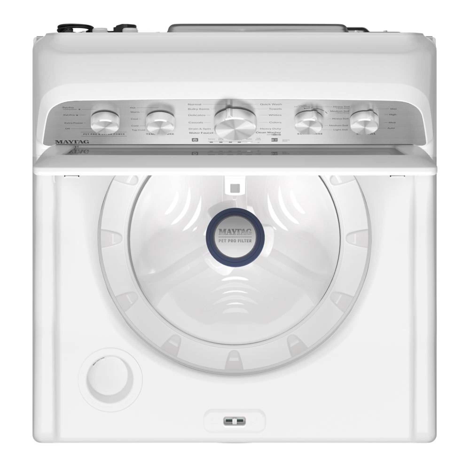 • Get a clean you can see with the Maytag Pet Pro washer that's built to trap and remove pet hair. Press the Pet Pro option to activate the built-in Pet Pro Filter to visibly remove pet hair. Extra Power boosts stain fighting on any wash cycle so you can walk away while stains wash away. The Deep Fill option delivers more water when you want it with your choice of deeper water levels, while the built-in water faucet delivers a quick rinse or a long soak leaving clothes ready for the wash cycle