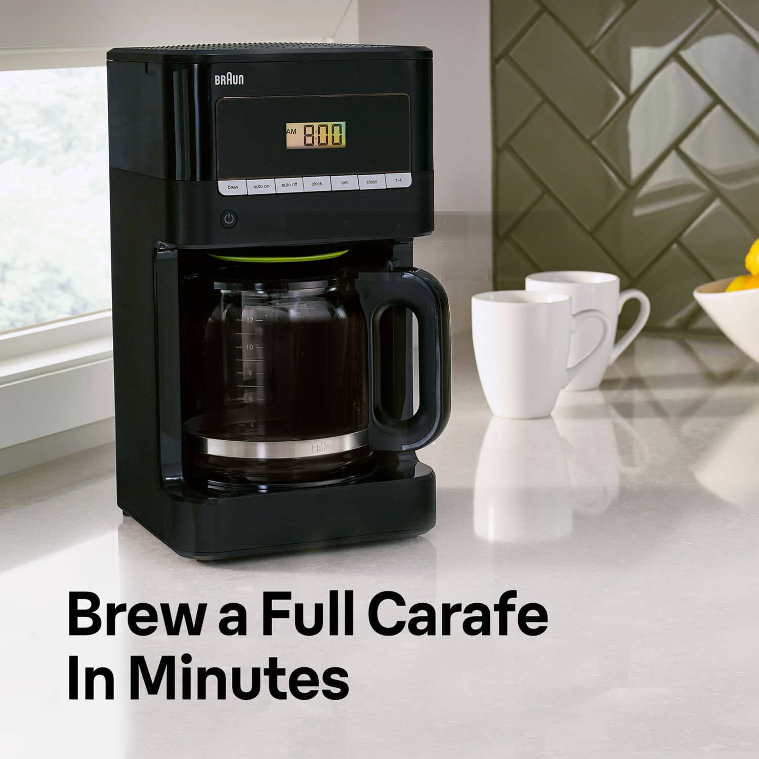 • Like the perfect brew, quality lies in the details. Braun’s BrewSense 12-cup drip coffee maker, model KF7000BK, blends thoughtful design and reliability for rich, bold coffee in the comfort of your home. Braun’s years of brewing knowledge, attention to detail and unique PureFlavor system bring out all of the savory richness and flavor that make for a satisfying coffee experience. The streamlined design and sleek black finish allow Braun's BrewSense Coffee Maker to be the perfect complement to any contemporary kitchen. For the ultimate in precision, the unique carafe lid seals in flavor, while the anti-drip system allows you to pour any time during the brewing cycle. A fully automatic 24-hour programmable timer means your much-needed first cup of coffee will be waiting for you when you want it. Once the familiar aroma of freshly ground, brewed coffee fills your kitchen, you know something special awaits you. Discover rich, fresh-brewed coffee every day, with Braun.