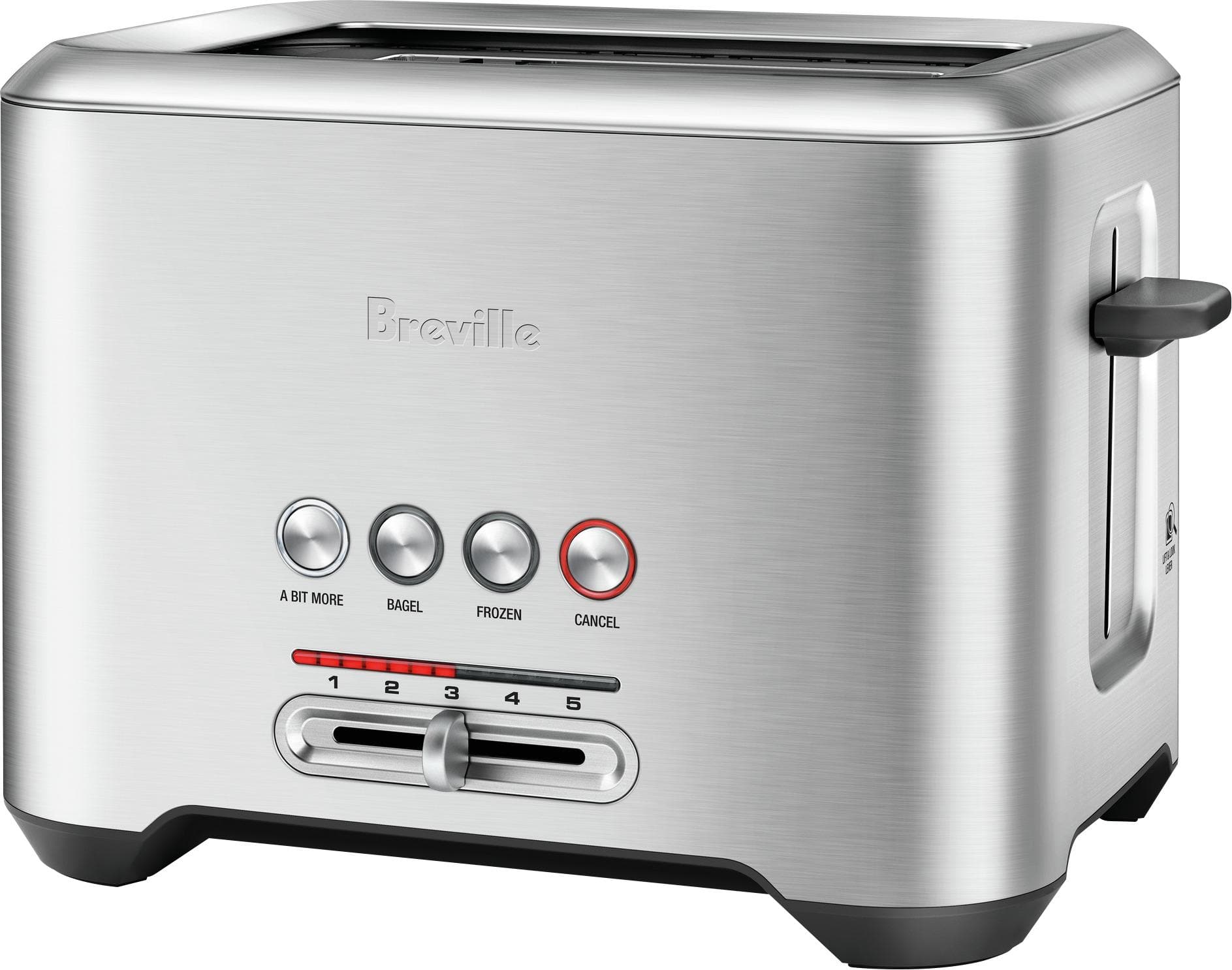 • Toast bread and bagels to perfection with this Breville Bit More four-slice toaster. Special let you customize heat for frozen baked goods, and the Bit More button adds a little extra cooking time. Watch the progress of your toast with the LED controls of this Breville Bit More four-slice toaster.
