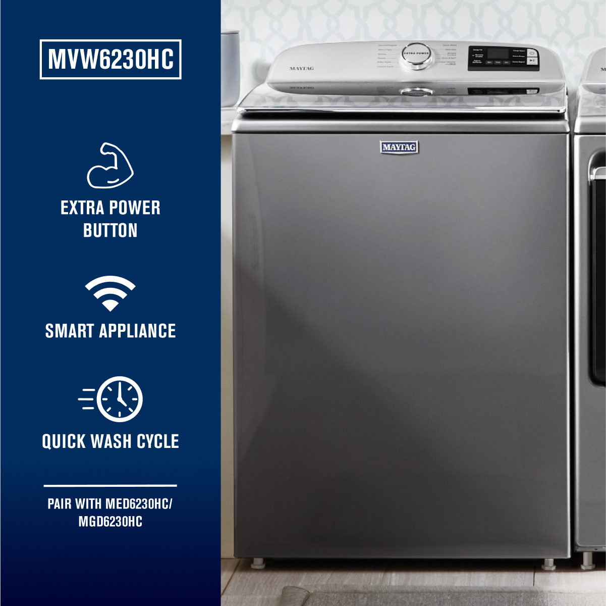 • With every laundry cycle, Maytag delivers powerful cleaning with the Power™ agitator to break apart stains on even your dirtiest clothes. Use Extra Power for boosted stain fighting on any wash cycle, while the Deep Fill option delivers more water when you want it with your choice of deeper water levels.* Plus, smart features help you stay in control and efficiently manage laundry from anywhere.** Use the Maytag™ app to remotely start or stop your appliance, get end of cycle notifications and troubleshoot select issues.*Bulky Items cycle only available with deepest water level.**Appliance must be set to remote enable. WiFi & App Required. Features subject to change. Details & privacy info at maytag.com/connect.