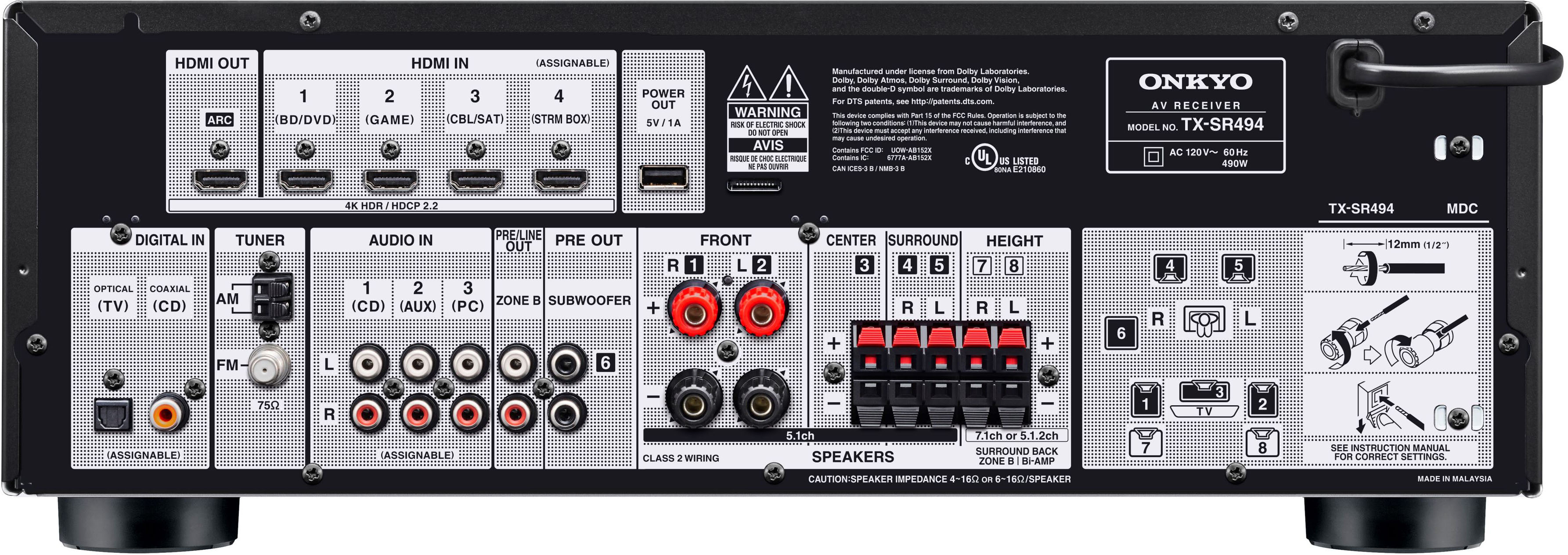 Onkyo - TX-SR494 7.2-Channel A/V Receiver - Black