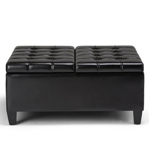 • Simpli Home - Harrison 36 inch Wide Transitional Square Coffee Table Storage Ottoman Faux Leather...