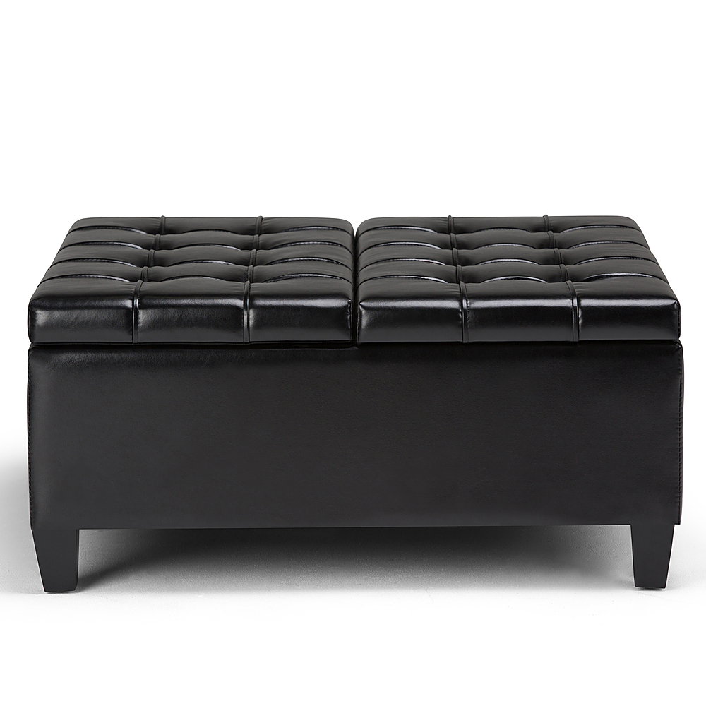 • Maximize the space in your living room or family room with the Harrison coffee table storage ottoman. The contemporary, yet functional design of the ottoman makes it a necessity for any home. The split top features stylish tufted details and one side lifts up - perfect for a lap top, tablet or dining. The large interior space is the perfect solution for your storage needs.
