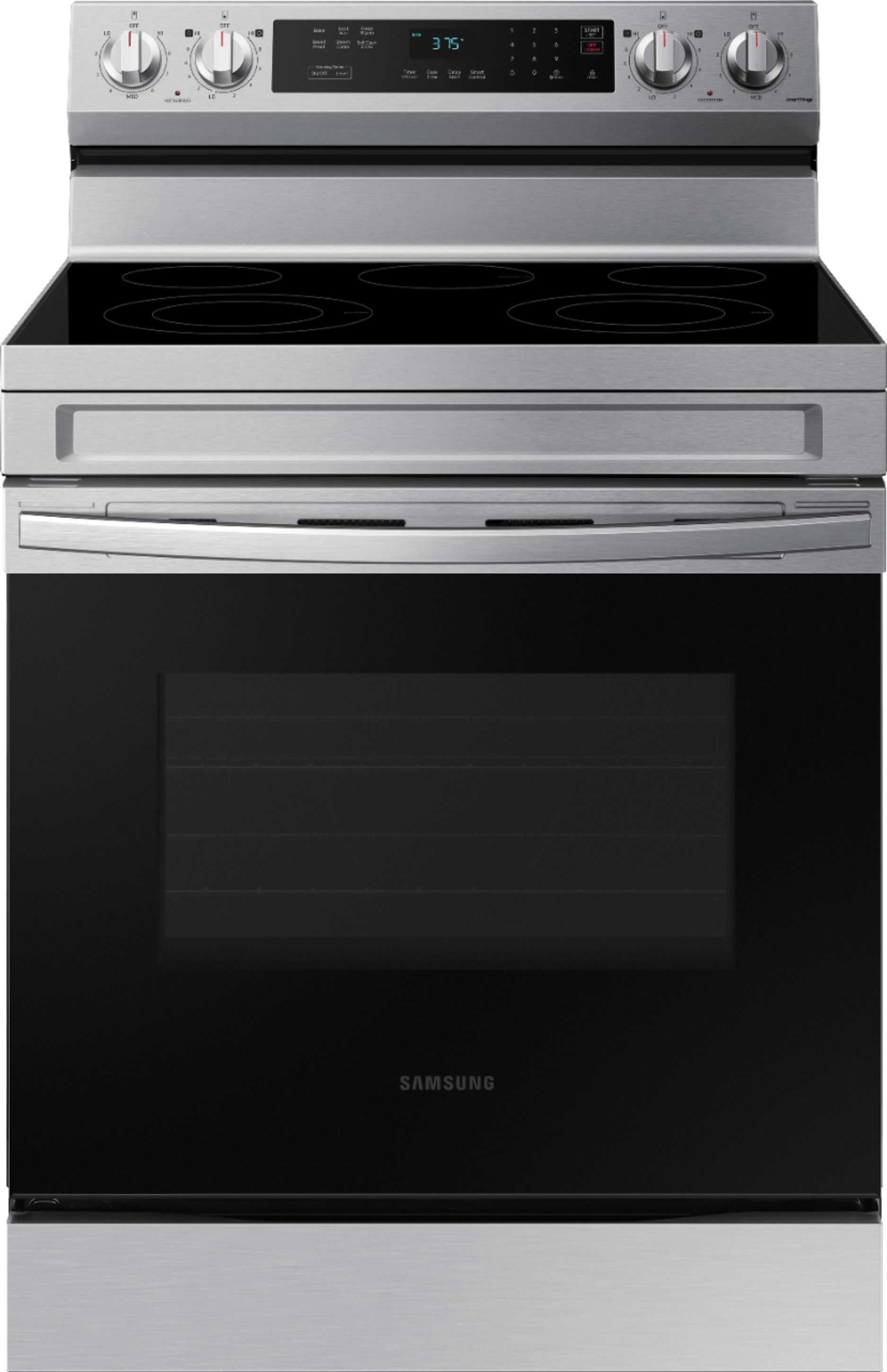 • Elevate the look of your kitchen with Samsung’s Smart Freestanding Electric Range. Our Stainless Steel design elegantly wraps around cooktop sides and up through the slim control panel. Upgraded technology makes cooking simple and fun.
