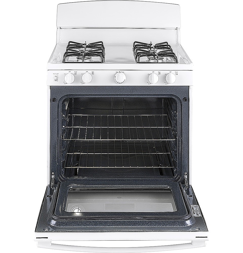 • Make memorable meals with this 30-inch GE freestanding gas range. The large oven window ensures a clear view of dishes baking or roasting on the two racks, while the four precise stove top burners provide great results when you simmer, sear or saute. This GE freestanding gas range has sealed burners to keep your cooktop looking tidy.