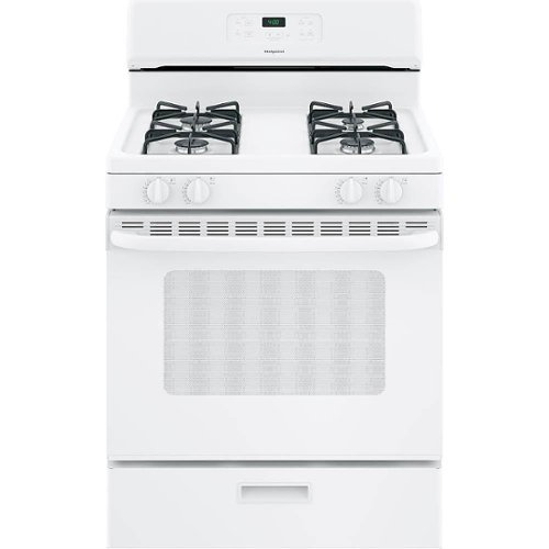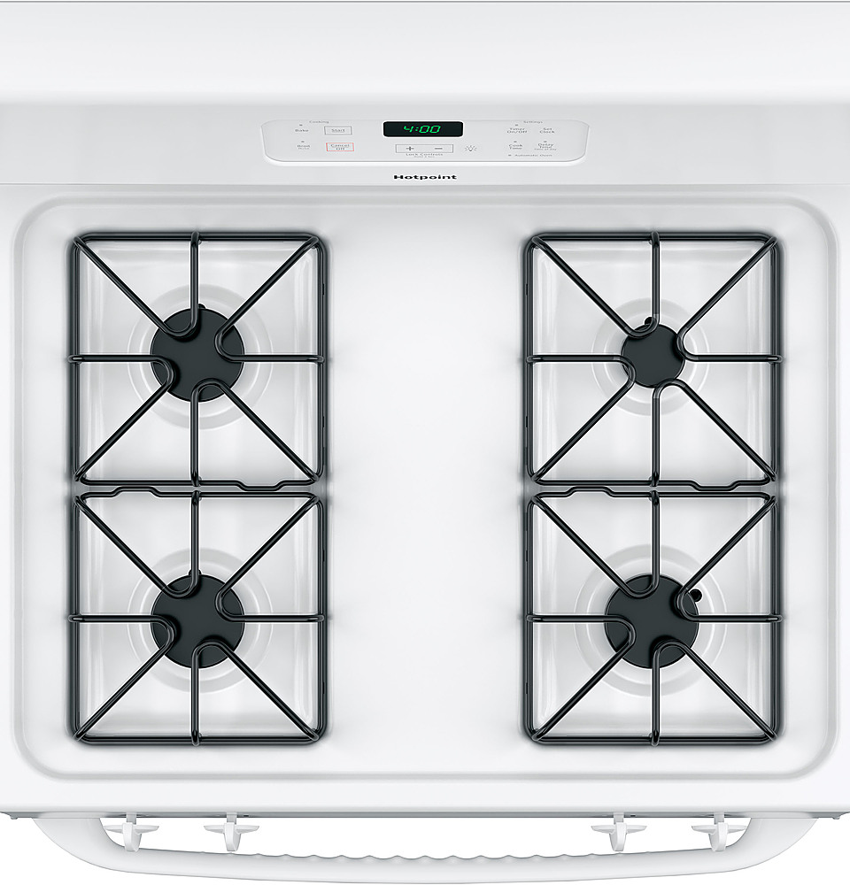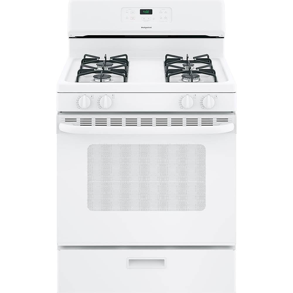 • Prepare a cozy dinner with this 30-inch Hotpoint gas range. It has a 4.8 cu. ft. oven capacity that offers plenty of room for cookware of various sizes, and the front temperature dials let you conveniently adjust the heat. The heavy steel grates of this freestanding Hotpoint gas range provide durable cooktop protection.