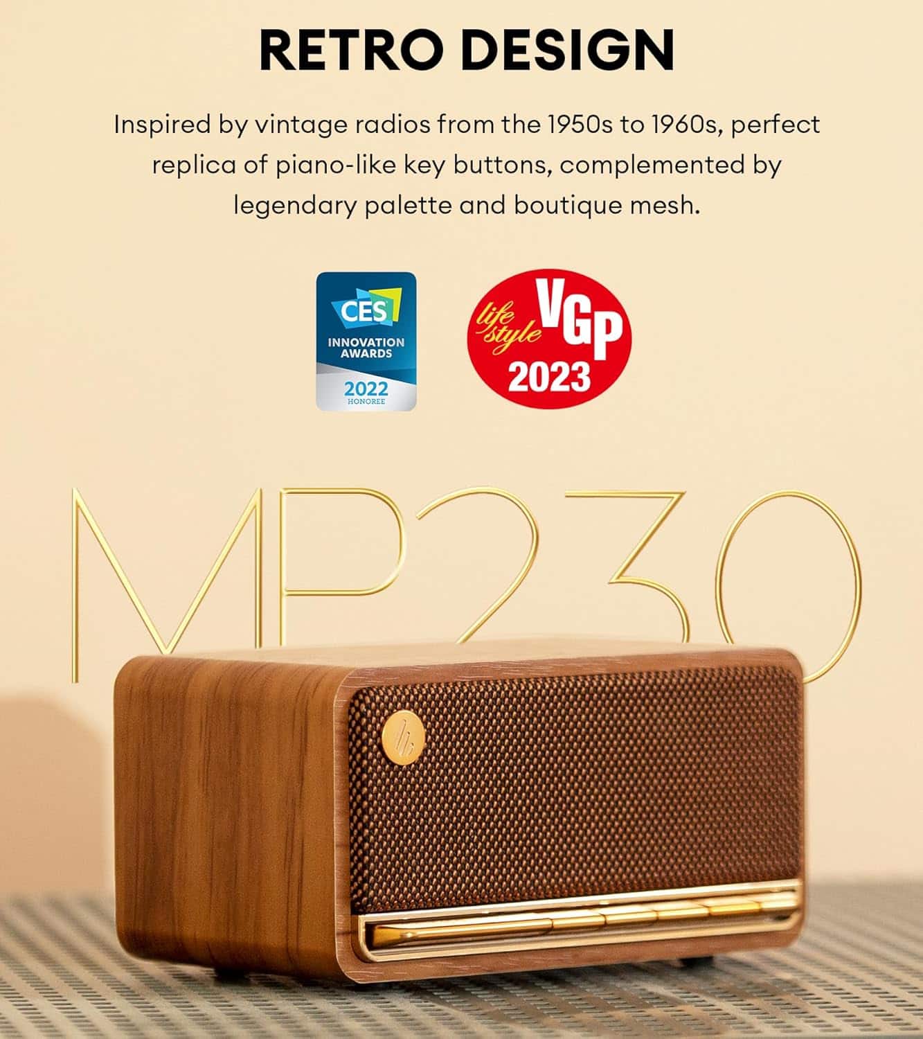 • The MP230 boasts a duplex design 2600 mAh high-capacity lithium-polymer battery, able to sustain Bluetooth playback for up to 10 hours per charge.