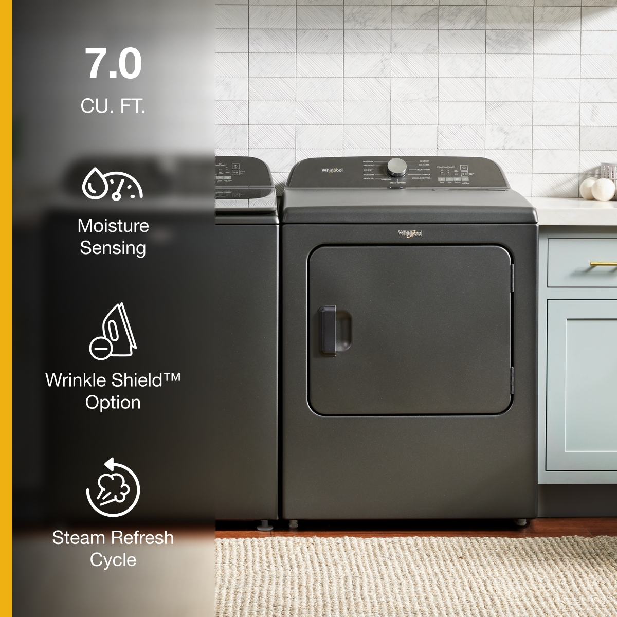 • 7.0 Cu. Ft. Whirlpool Top Load Electric Dryer with Moisture Sensor - Volcano Black