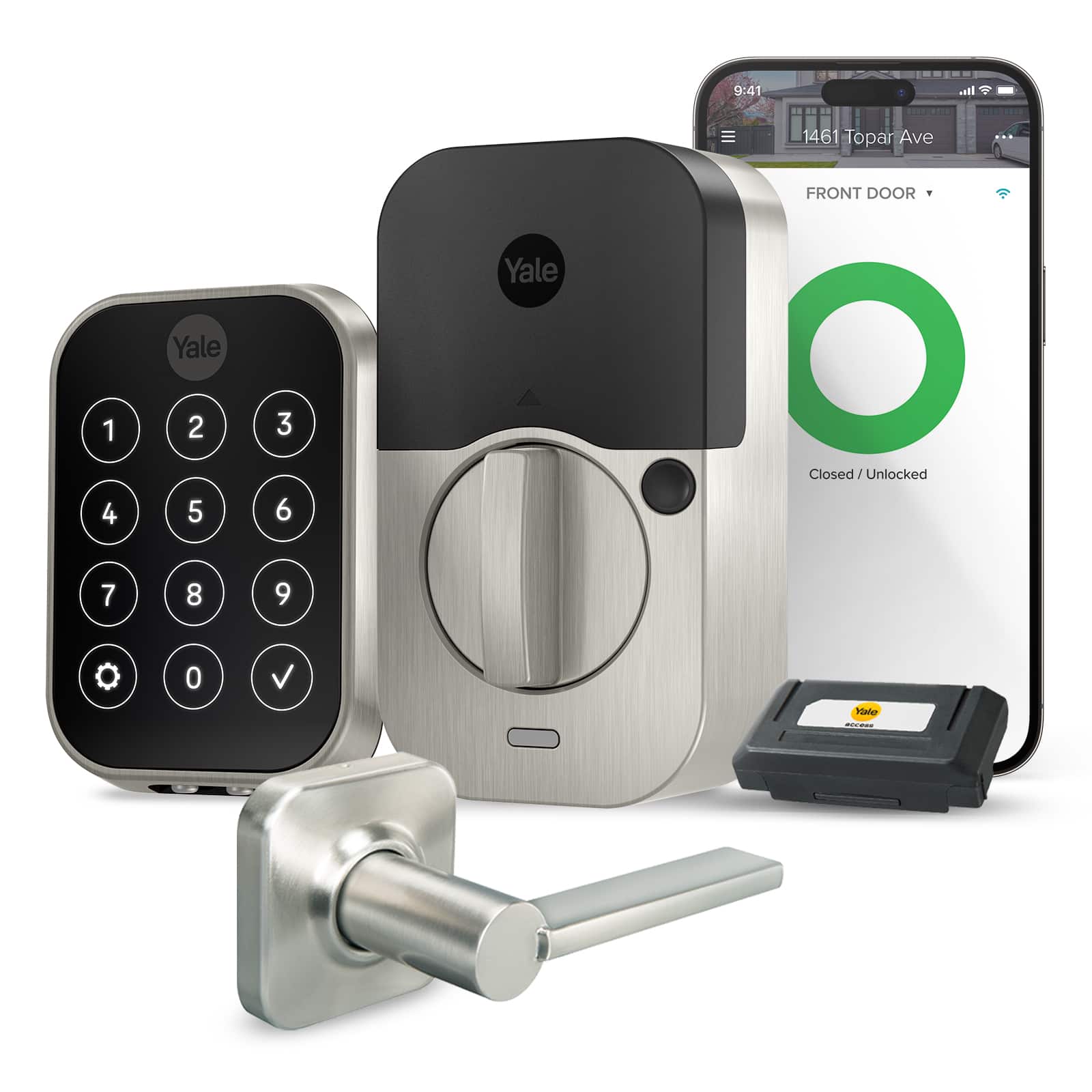 • You've got enough on your plate, let Yale get the door with the Yale Assure Lock 2. With multiple ways to unlock, the ability to easily share and track entry codes and advanced Auto-Lock with DoorSense(R), this Wi-Fi smart lock gives you one less thing to worry about. With built-in Wi-Fi, you can easily check that the door is locked, see if the dog walker came on time and receive a notification when the kids get home from school when you’re away from home, using the Yale Access App. A matching passage lever is included in this great bundle! The Assure lock 2 and passage lever are both super easy to use and installs in minutes with just a screwdriver on standard doors (1-3/8" to 2-1/4" thick).
