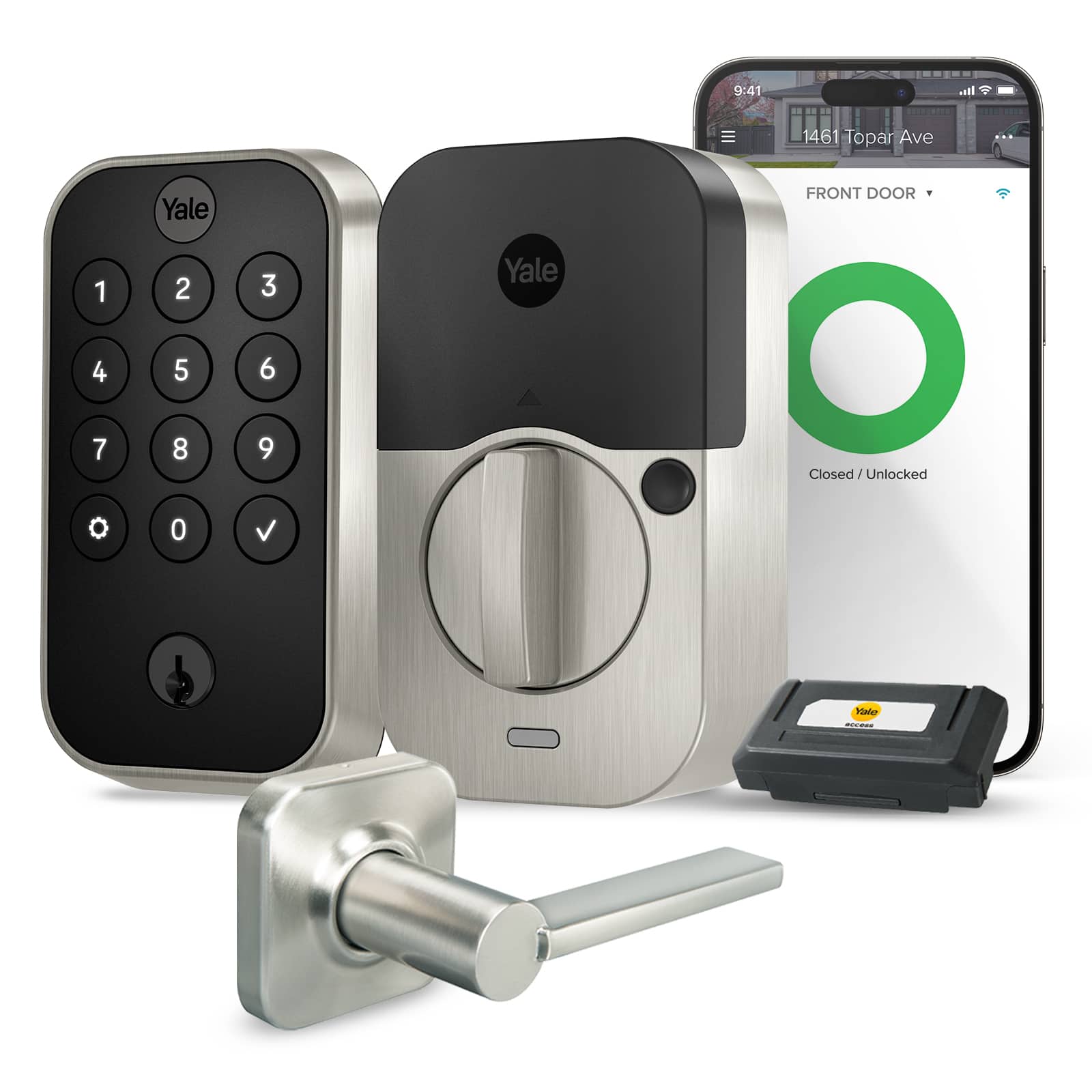 • You've got enough on your plate, let Yale get the door with the Yale Assure Lock 2. With multiple ways to unlock, the ability to easily share and track entry codes and advanced Auto-Lock with DoorSense(R), this Wi-Fi smart lock gives you one less thing to worry about. With built-in Wi-Fi, you can easily check that the door is locked, see if the dog walker came on time and receive a notification when the kids get home from school when you’re away from home, using the Yale Access App. A matching passage lever is included in this great bundle! The Assure lock 2 and passage lever are both super easy to use and installs in minutes with just a screwdriver on standard doors (1-3/8" to 2-1/4" thick).