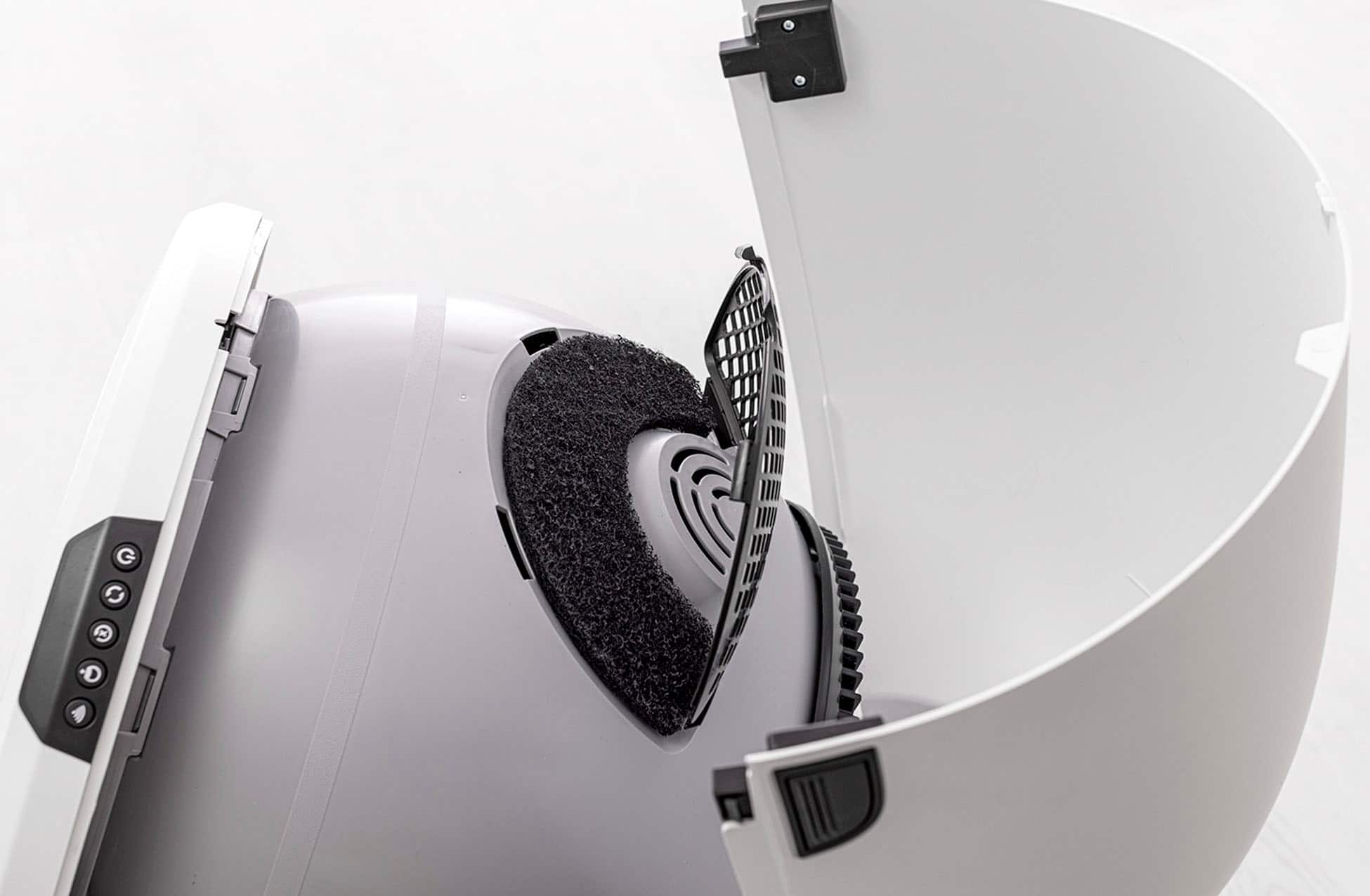 • Litter-Robot 4 is designed to hold a Carbon Filter to assist in additional odor control. The carbon filter can be replaced monthly for optimal odor control