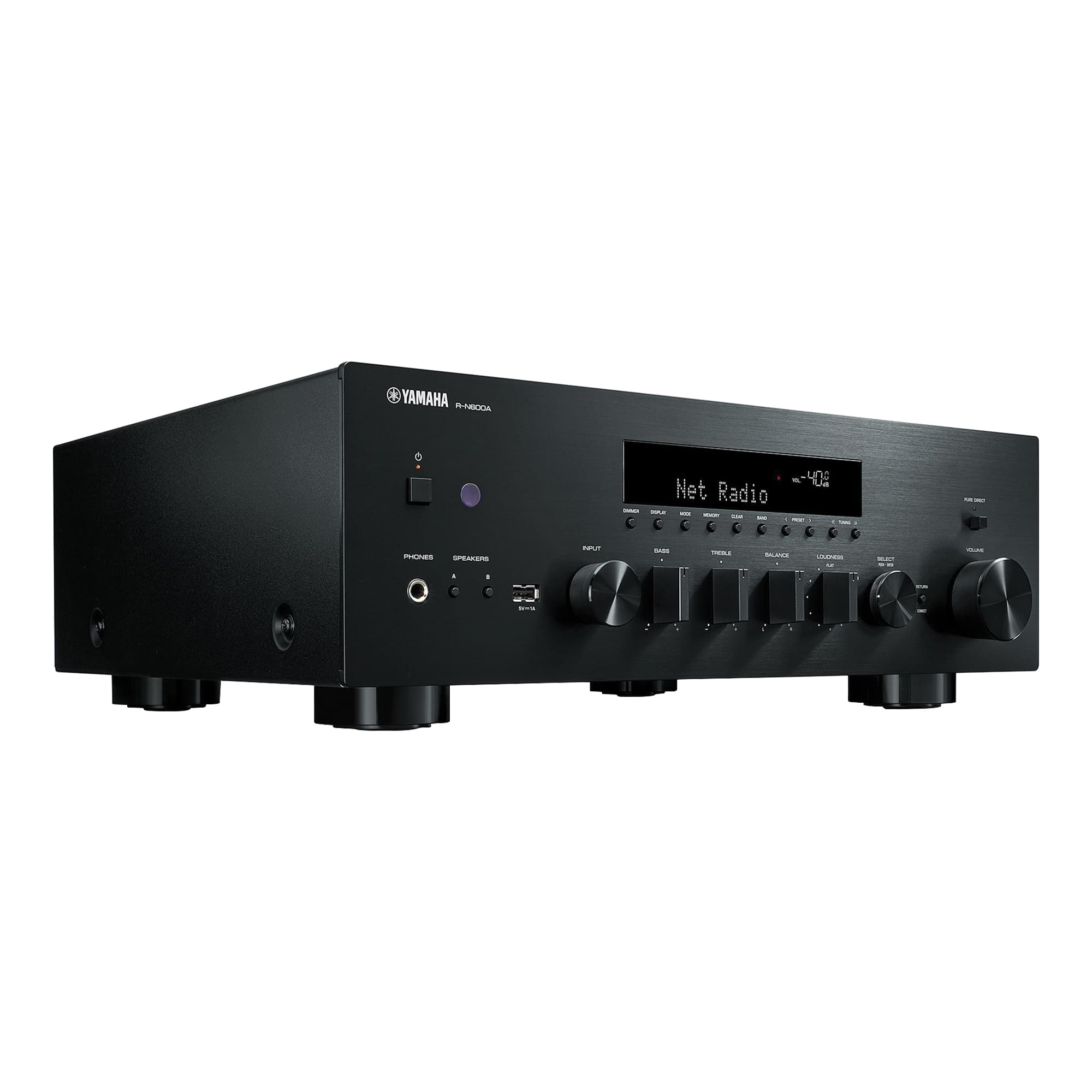 • The Yamaha R-N600A Network Receiver inherits the company’s full-fledged Hi-Fi sound reproduction and design from its years of technological expertise. The stereo receiver is also compatible with MusicCast, giving you greater listening freedom and flexibility so you have full listening enjoyment of an exceptionally wide variety of music content, including your favorite streaming services, high-resolution sound sources, and even vinyl records—all with Hi-Fi sound. This receiver delivers sophisticated sound and appearance for a total listening experience that's a step above the rest.