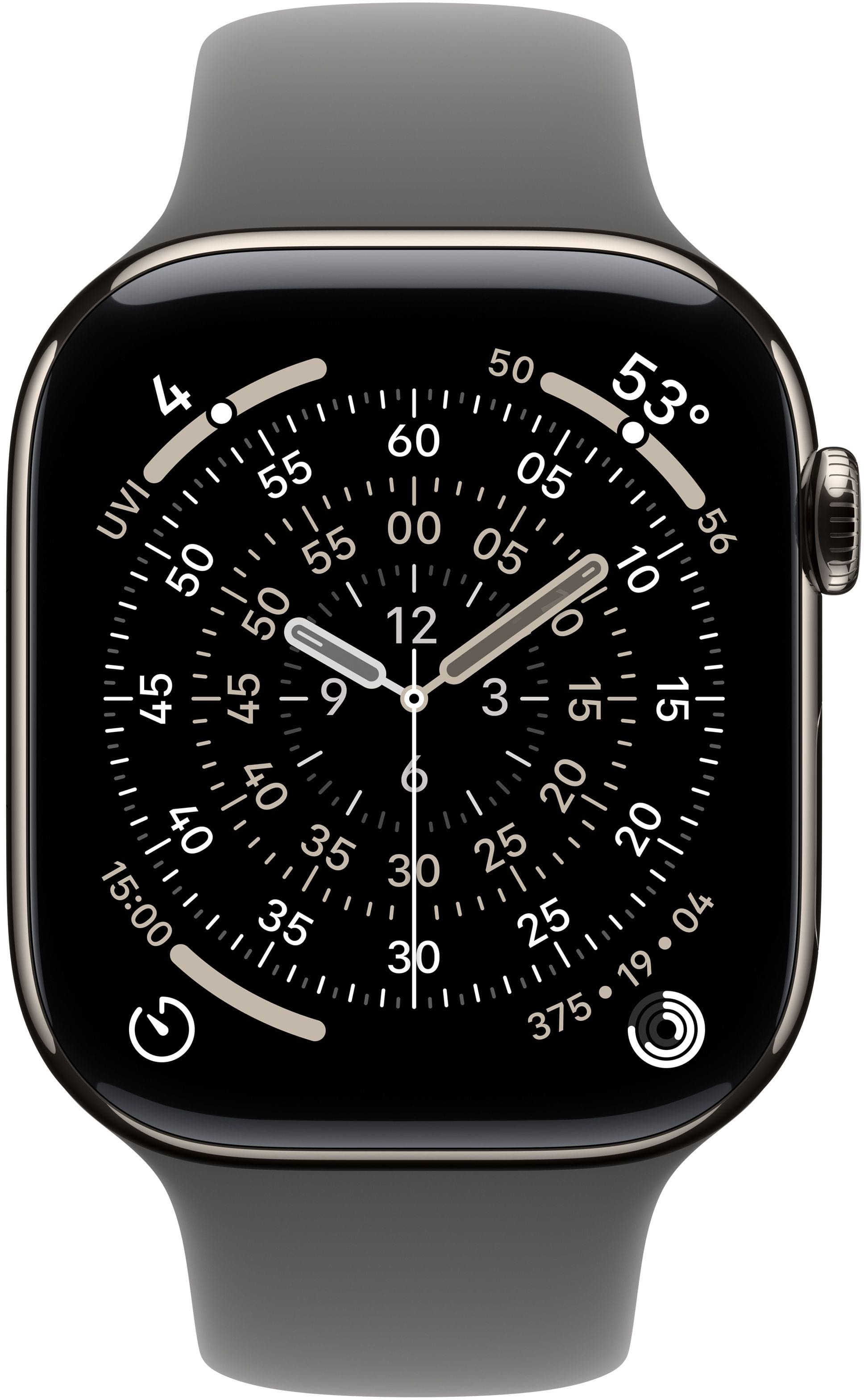 • Apple Watch Series 11 (GPS+Cellular) 46mm Titanium Case with Stone Gray Sport Band - M/L - Natura...