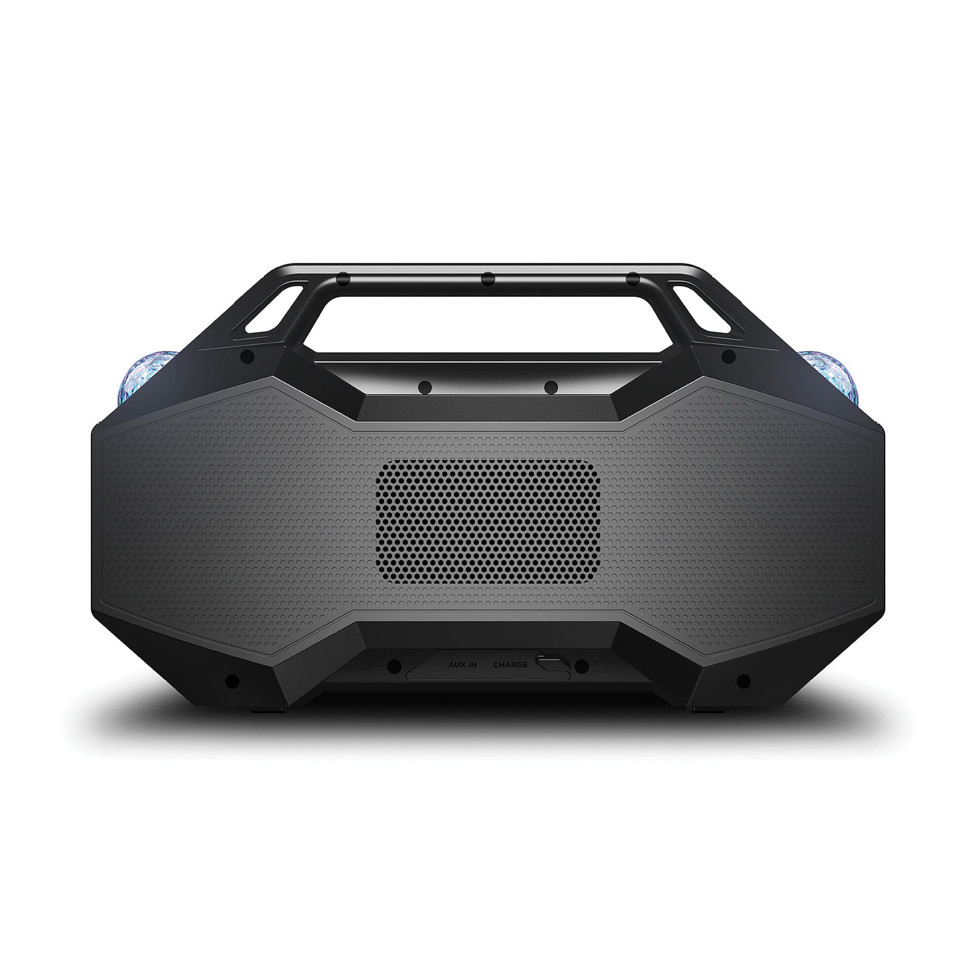 • ION’s Party Rocker Go Bluetooth boombox LED speaker with Party Starter Lights is the ultimate party LED speaker. A powerful Bluetooth boombox LED speaker that is perfect for partying on the go. ION’s portable Bluetooth speakers with built-in party lights give you the opportunity to have an instant party anywhere you are. The new ION Bluetooth boombox, Party Rocker Go is no exception. If you’re looking for an outdoor speaker that can go anywhere you go, then you’ve found it! The Party Rocker Go Bluetooth boombox LED speaker is a lightweight party speaker that is powerful and easy to carry making it perfect for partying on the go. Whether you’re having an event in the backyard, skateboarding in the park, or floating in the pool or at the beach, you want your favorite music with you. The Party Rocker Go is a water-resistant high-power portable boombox that streams music wirelessly from any Bluetooth -enabled device. This 60-Watt Bluetooth boombox speaker is rated at IPX5, so it is safe to leave in the rain or by the pool. With the new Party Starter Lights you can have an instant party atmosphere with multi-color lights that beat-sync to the music. Plus, there is a Bass Radiator with multi-color lighting so you can hear and see the bass bump and glow in multiple colors. Our exclusive Bass Boost button technology allows you to feel and hear instant bass intensification. Even outdoors, it gives new meaning to “feeling the music”. Party Rocker Go also has an FM radio with 6 presets which means you will always have music available.