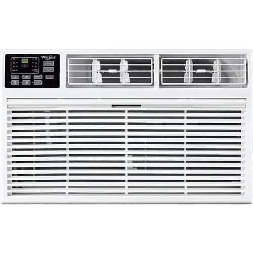 • Whirlpool takes comfort and caring to the next level. The through-the-wall air conditioners are compatible with standard wall sleeves and offer a permanent cooling solution for areas of your home that are not connected to a central cooling system, saving you the hassle of summer installation then winter storage season after season. This 14,000/13600 BTU model quickly cools a room up to 700 square feet with up to 2.1 pints per hour dehumidification. It also features 10600/8600 BTUs of supplemental heating to take the chill out of early Fall nights but is not meant as a primary heat source in the coldest months. Equipped with a programmable 24-hour, you can customize the start and stop times to fit your schedule. Plus, three cooling speeds, Eco function, and Sleep function all give you the flexibility you need to keep you and your loved ones comfortable. On-board electronic controls are supplemented by a convenient remote control so you can customize your cool from anywhere in the room.
