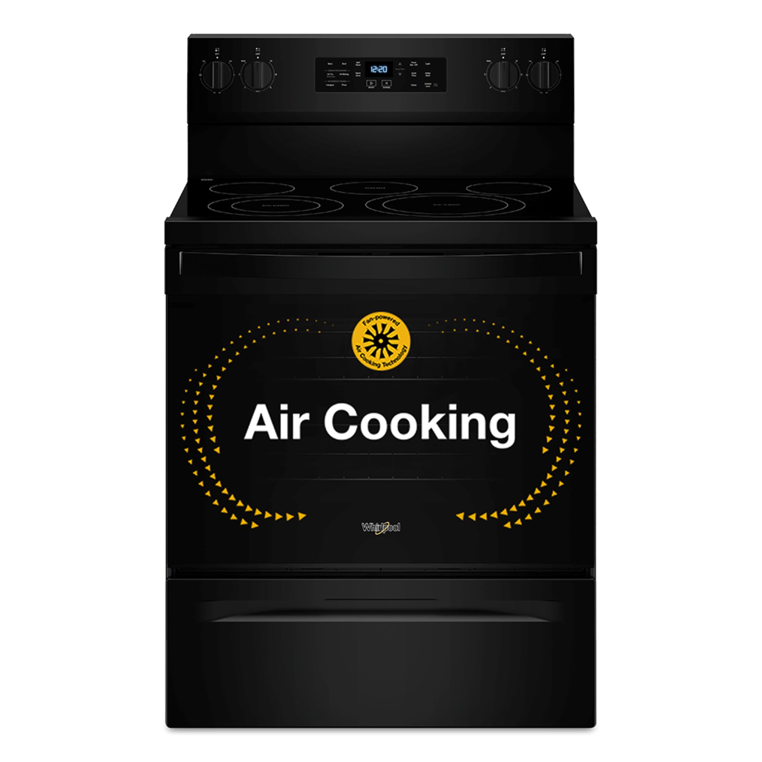 • Experience the difference* of Air Cooking Technology with this 30-inch electric range. Get crispy fast with No Preheat Air Fry, and bake evenly on multiple racks with the dynamic air flow of Air Baking. Make feel-good meals with a variety of cooking modes, and boil 40% faster with 2 FlexHeat Dual Radiant Elements.* *Compared to thermal bake **When comparing the 9" element to the standard 6" element on the same unit.
