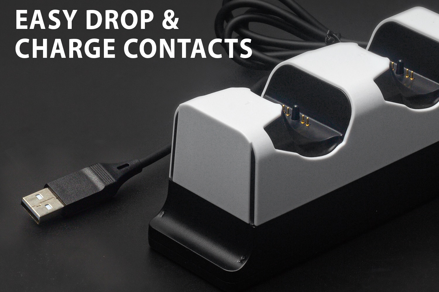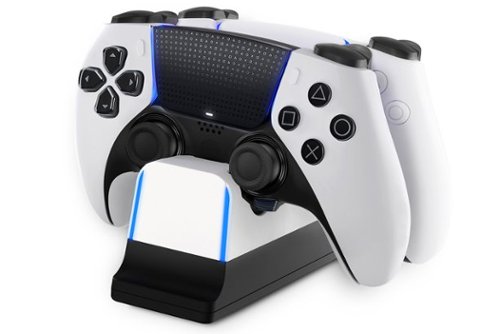 • Stay charged and organized with the NEXT Gaming Dual Controller Charging Station for PlayStation 5 DualSense controllers. Quickly charge your official DualSense controllers with this easy drop-in design. The heavy base with rubber feet stays in place while it quickly charges up to two controllers.