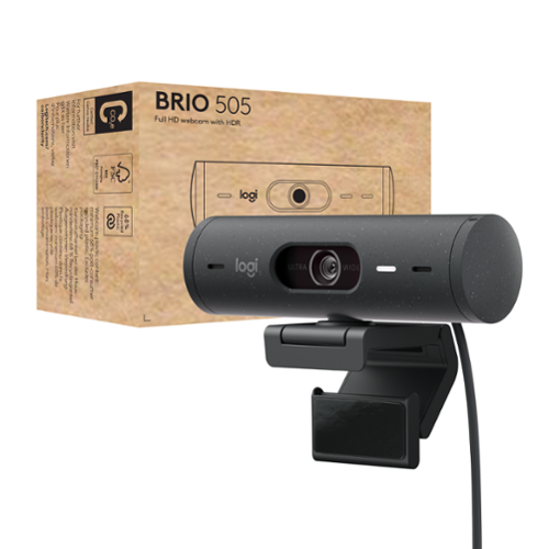 • Brio 505 is a 1080p plug-and-play webcam certified for the major video calling platforms. Deploy it with confidence to workstations and home offices. Features such as advanced light correction, auto-framing, noise-reducing mics, and Show Mode provide a flawless meeting experience for employees with little to no effort on their part.