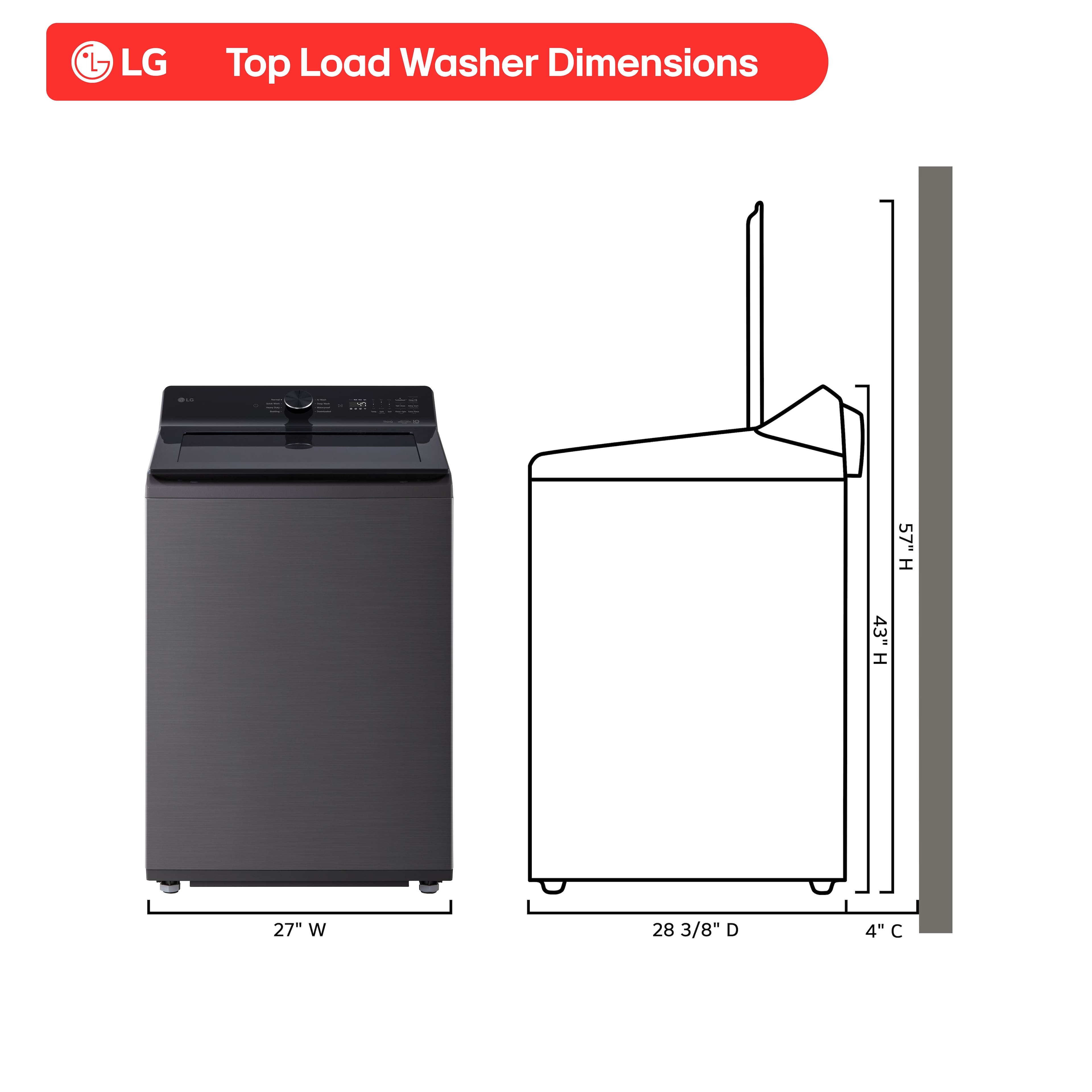 • Outfitted with features you’d expect to find on higher-end models, this LG top load washer is an instant upgrade for any laundry space. Easily reach items at the bottom of the tub and leave no sock behind with LG’s ergonomic EasyUnload angled front. Take control with the electronic dial and touch panel or select AI Wash and let built-in intelligence choose just the right settings for you. A choice of finishes and sleek, modern design make this washer an easy choice.