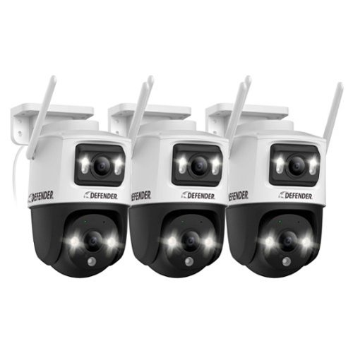 • Defender - AI POWERED Guard Pro 3K PLUS Dual Lens PTZ Wi-Fi 6 Plug-in Security Camera - 3 Pack - ...