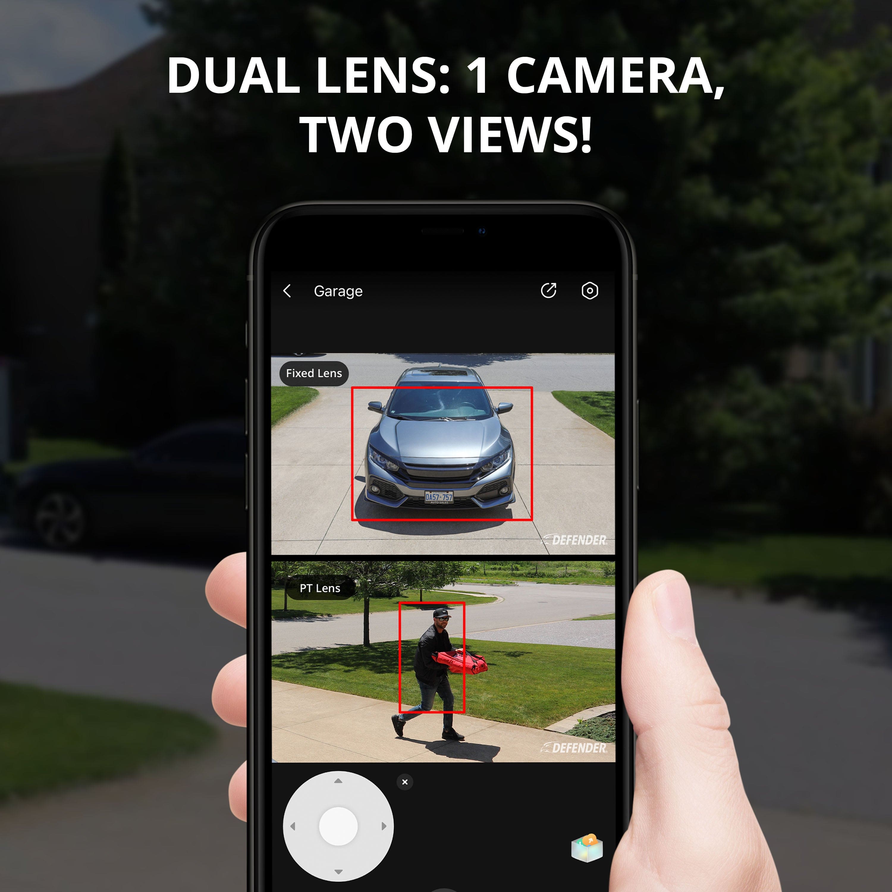 • Unveiling the future of home surveillance technology. Incredible, limitless 3K PLUS clarity with dual lens for panoramic viewing. Stay secured with SMART AI-powered automatic human/vehicle tracking, or remotely pan, tilt & zoom your Guard Pro camera with the top-rated free mobile app. Integrated with siren & strobe light deterrence, motion alerts so you can be notified of trespassers immediately. 24/7 security that provides vibrant color footage, even in pitch darkness with color night vision capabilities. ONLY compatible with Defender Guard app. Can not be used with other Defender apps.