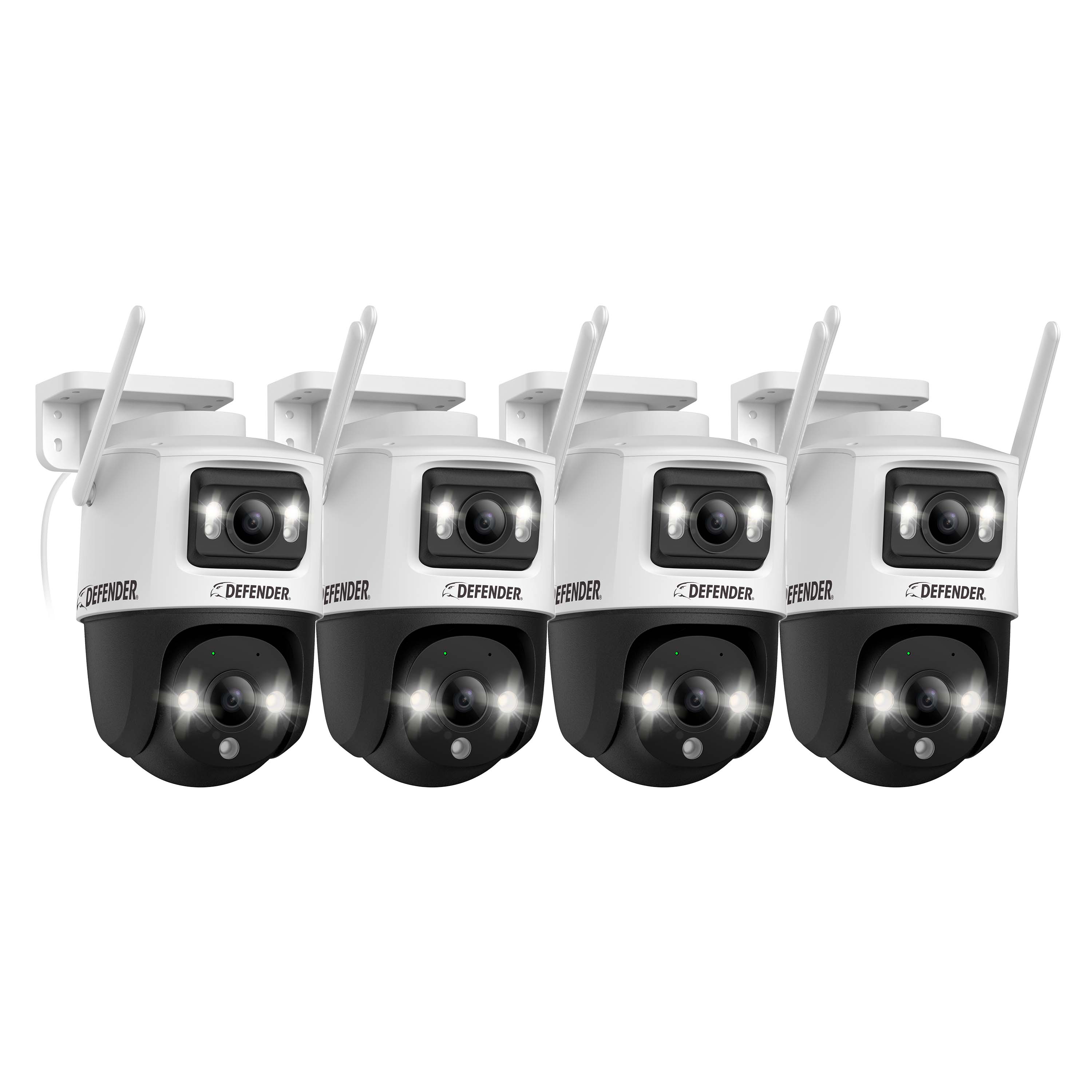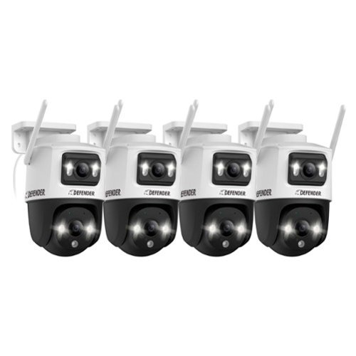 • Defender - AI POWERED Guard Pro 3K PLUS Dual Lens PTZ Wi-Fi 6 Plug-in Security Camera - 4 Pack - ...