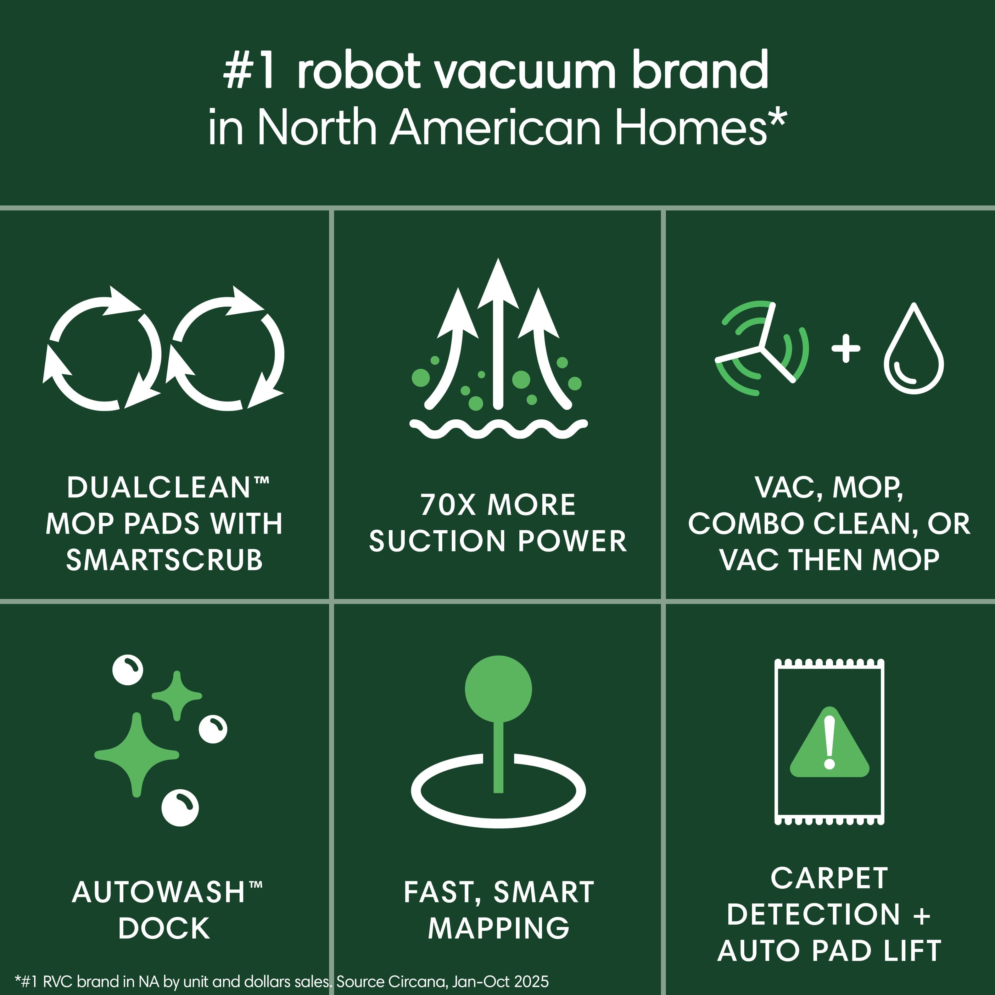 • Roomba Plus 405 Combo Robot + AutoWash Dock offers effortless, complete cleaning with 70X more power-lifting suction*, advanced spinning DualClean Mop Pads and carpet detection so mop pads automatically lift up and away from carpets. The AutoWash Dock does more for you by auto-emptying, and washing & drying mop pads to ensure they stay fresh. ClearView LiDAR quickly maps your home and steers around everyday obstacles. Ask your voice assistant** or just tap the Roomba Home App to vacuum, mop, both, or vacuum first and mop second, day or night.