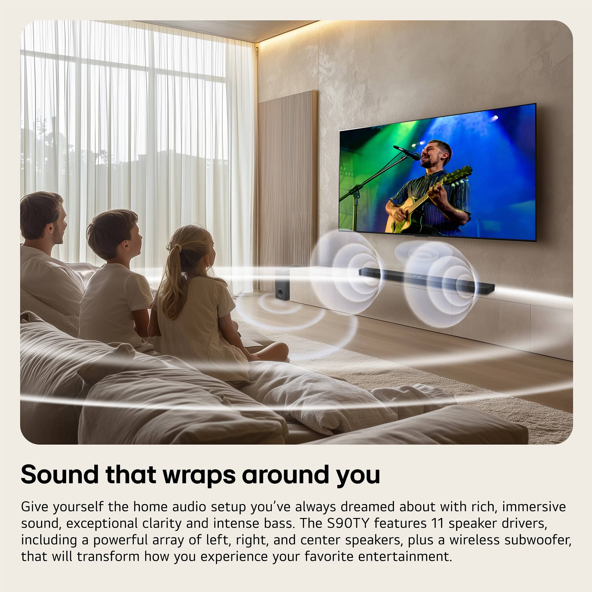 • LG - 5.1.3-Channel S90TY Soundbar with Wireless Subwoofer, Dolby Atmos, WOW Orchestra - Black