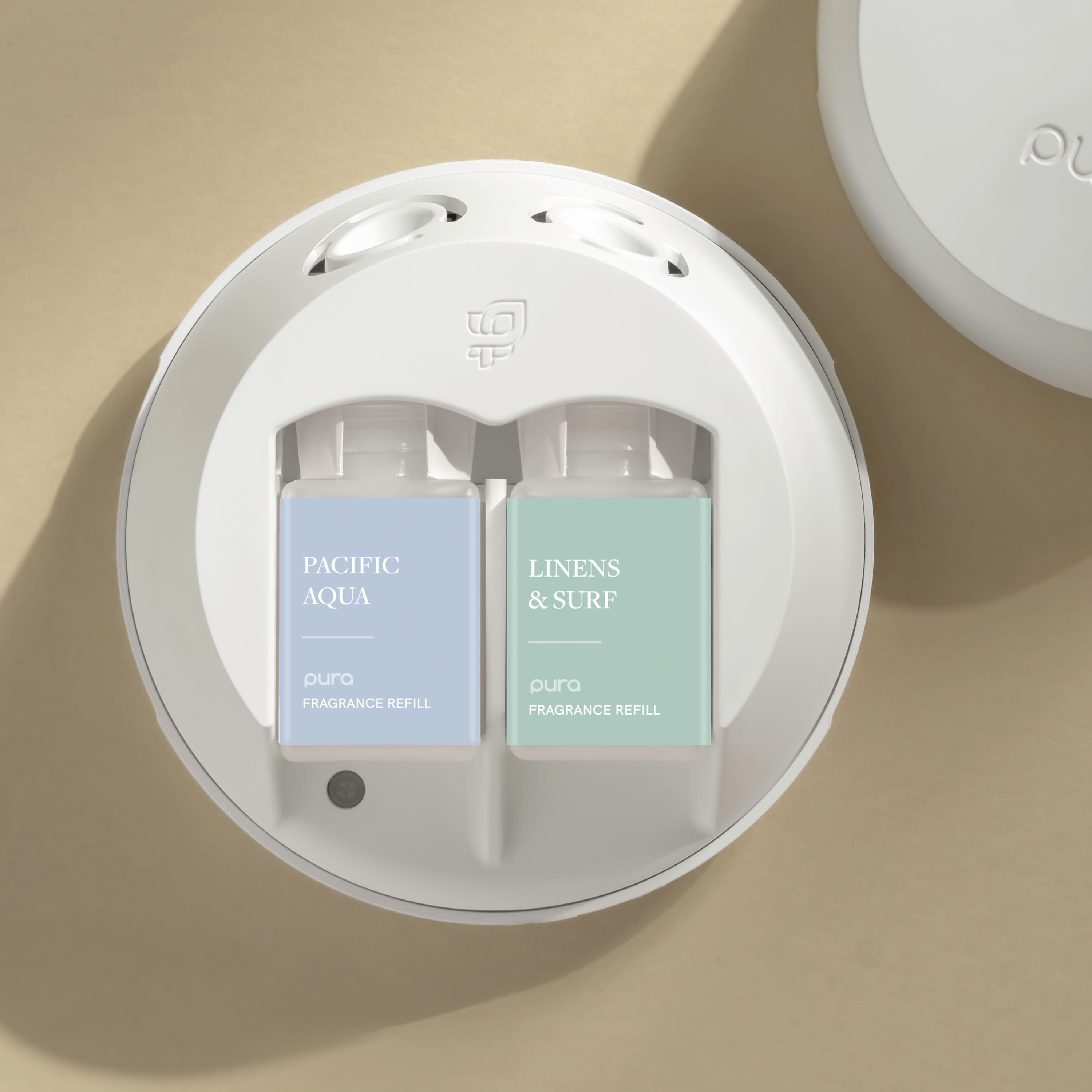 • Starter Set Includes: 1 Pura 4 Smart Fragrance Diffuser, 1 Pura Pacific Aqua Fragrance Refill, & 1 Pura Linens & Surf Fragrance Refill. The Pura 4 smart fragrance diffuser uses innovative smart features paired with premium, clean scents to give you the most modern, customized, and high-end scenting experience possible. Simply insert your smart fragrance vial and Pura 4 automatically detects the fragrance, creating a seamless swapping experience. Adaptive diffusion technology reads the room's temperature and adjusts according to your preferences for a consistent, reliable scenting experience. Adjust fragrance intensity, easily switch between fragrances, set schedules and timers, and more—all from the Pura app. All our scents are created with clean ingredients and are safe for kids and pets. For more on what we do and don’t include in our scents, see the Pura Promise.
