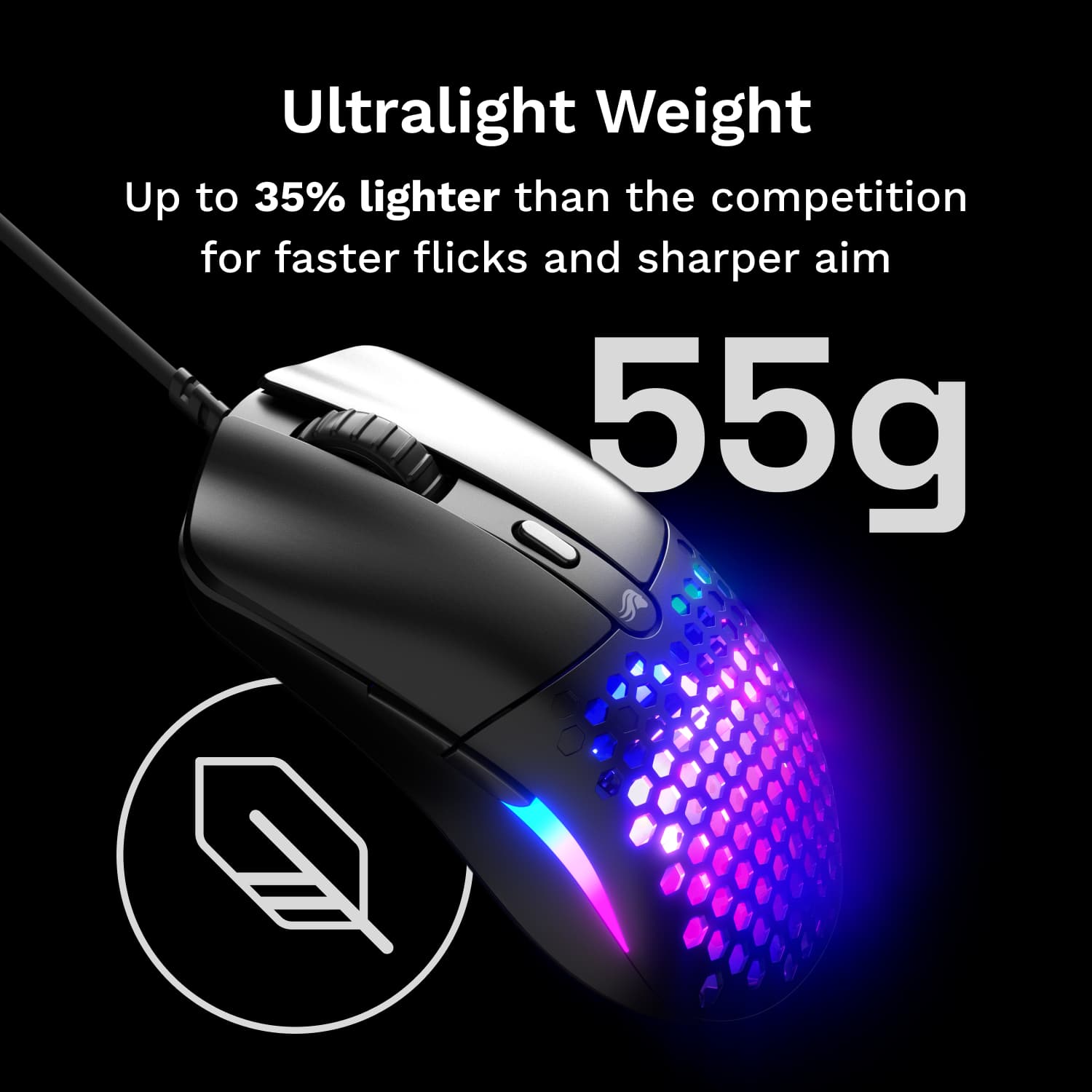 • The Model O Eternal ultralight RGB gaming mouse takes our award-winning Model O’s iconic shape, speed, and precision, and bundles it into a sleek package eternally ready for action. Its symmetrical design ensures a natural, secure grip—whether you’re gaming or just getting things done. With 6 remappable buttons, assign your go-to equipment, abilities, and shortcuts exactly where they feel right. At just 55g (up to 35% lighter than the competition), the Model O Eternal ditches the deadweight, letting you swipe and stop quicker and more precisely. Its honeycomb design cuts weight without sacrificing comfort or durability—because who needs extra grams holding them back? Rocking more than just a glowing logo, the Model O Eternal lights up with vibrant RGB on its flared side panels, customizable to match your setup’s vibe. Built to last, it features 80-million-click switches—no premature double-clicking here—and a 12K DPI optical sensor that tracks even your fastest flicks. Miss your mark? Don’t blame the sensor. With a 100-12,000 DPI range, dialing in sensitivity is a breeze. Ready for action, the Model O Eternal keeps you at the top of your game, no excuses.