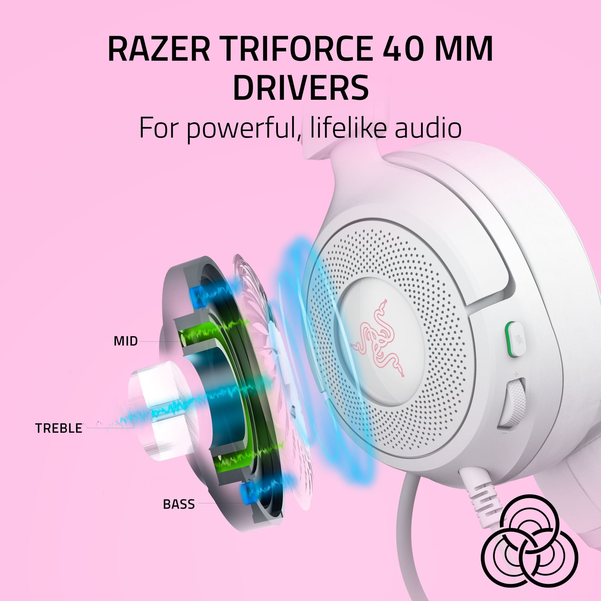 • Unleash your inner feline energy with the Razer Kraken Kitty V3 X, a headset with iconic kitty ears that lets you game, stream, and listen in style. Designed for all-day comfort, this lightweight headset delivers immersive audio and crystal-clear voice capture—whether tracking enemies, chatting live, or rediscovering a favorite track—all while keeping you effortlessly cute.