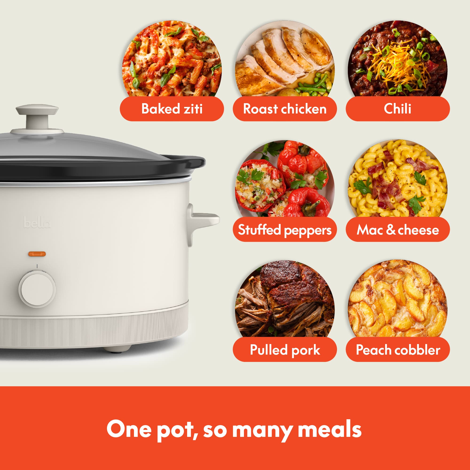• This sleek, modern-design bella 6-qt. Manual Slow Cooker has easy-to-use manual controls including 3 heat settings (low, high and warm) so you can slow cook your favorite crave-worthy meals to the perfect temperature. The removable stoneware pot and tempered glass lid are dishwasher safe for easy cleanup.