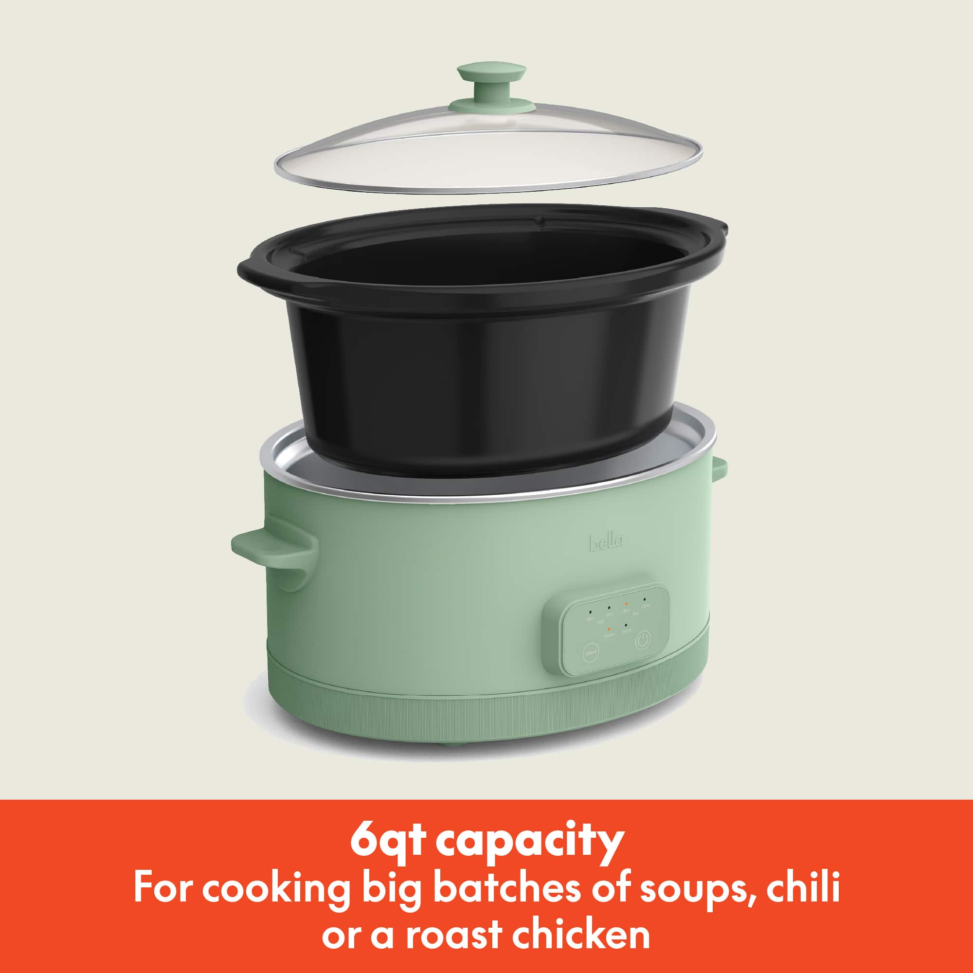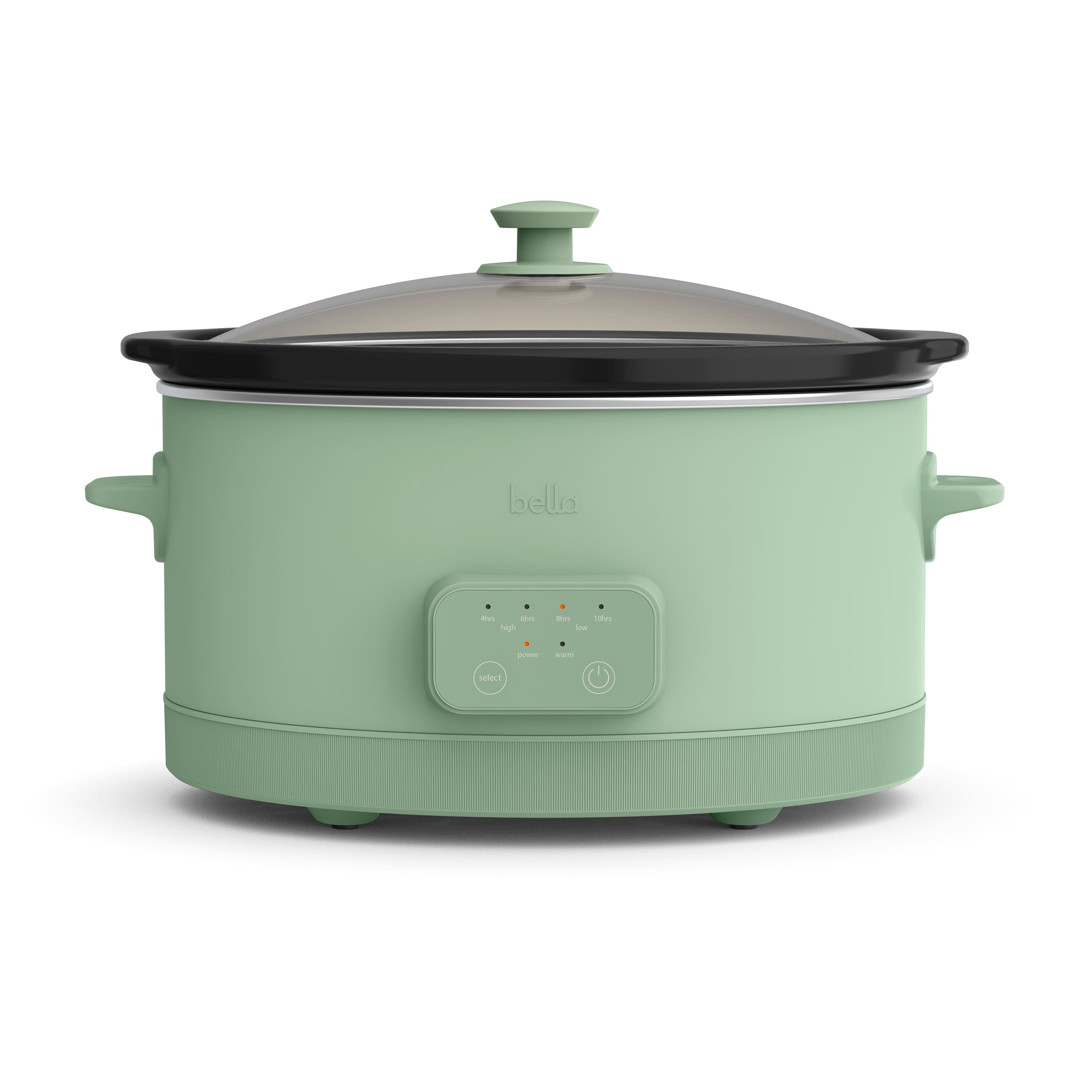 • This sleek, modern-design bella 6-qt. Programmable Slow Cooker has 4 timed presets (4-, 6-, 8-, 10-hour) so you can plan ahead. With 3 temperature control settings (high, low, warm), you can slow cook at just the right temp for your recipe. The removable pot and tempered glass lid are dishwasher safe for easy cleanup.
