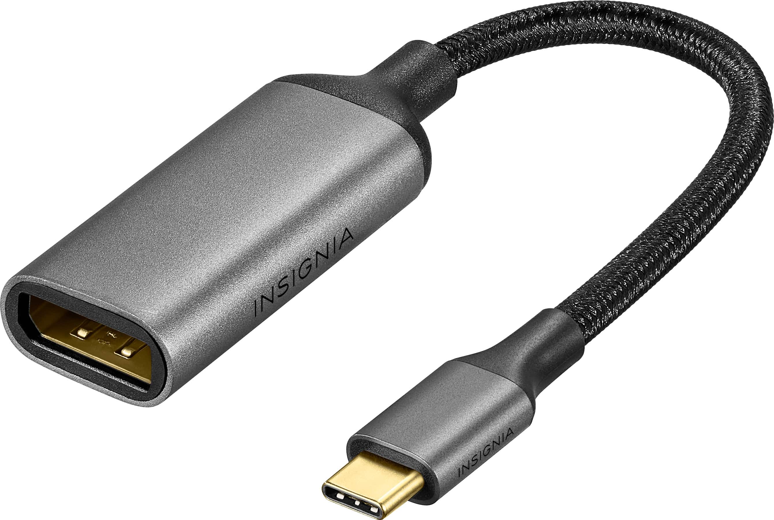 • Improve your workstation by connecting your laptop to an external monitor with this Insignia 8K USB-C to DisplayPort Adapter. The adapter supports 8K Ultra HD to prevent loss in quality when transferring between screens. It features a sleek braided cable jacket that flexes and bends to easily connect, and the plug-and-play design makes setup a breeze.