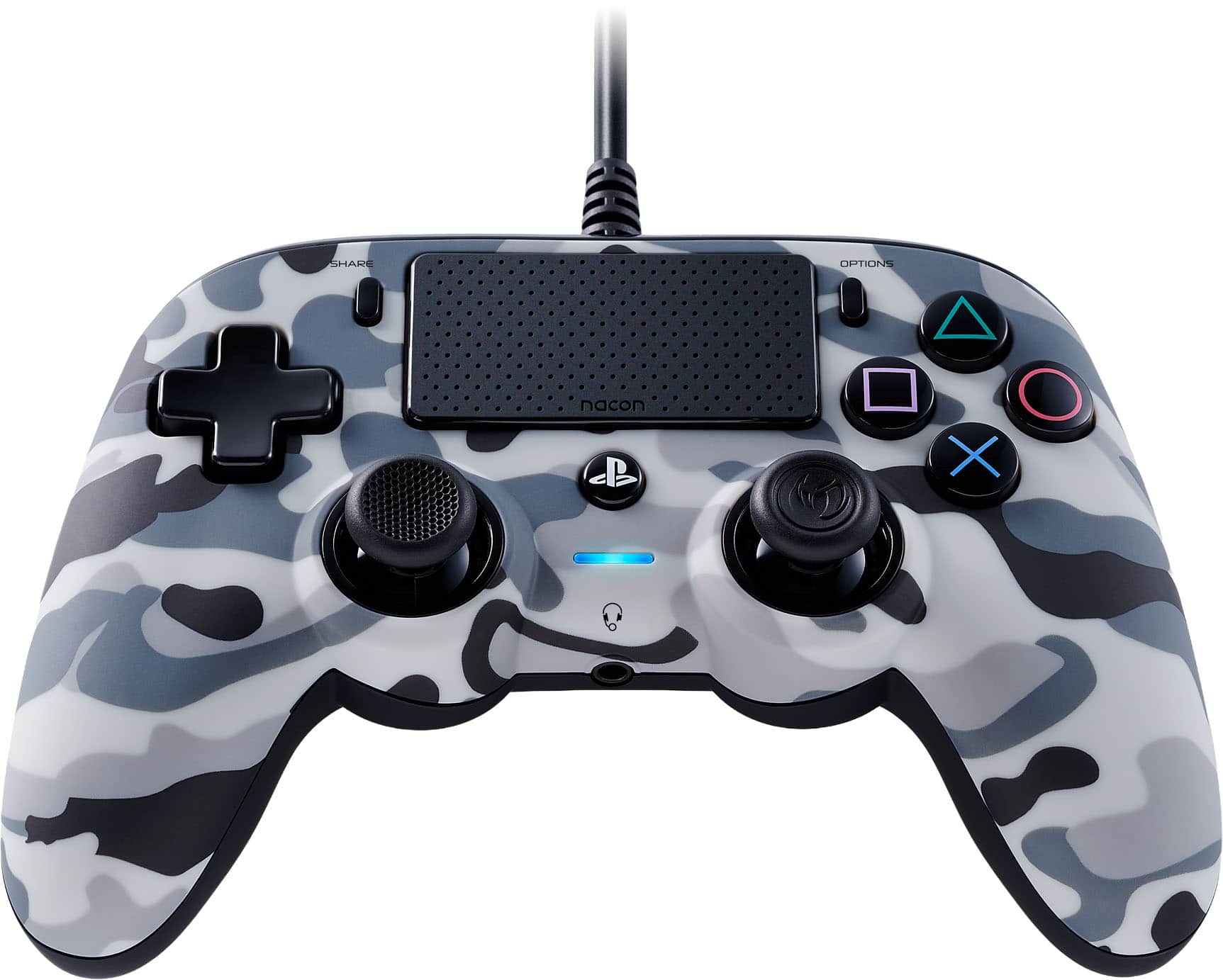 • Officially licensed for PlayStation, the Nacon Wired Controller includes a touch pad, immersive vibration motors and dedicated SHARE AND OPTIONS buttons. Larger face buttons and smooth rubber coating provides superior comfort and grip for long gaming sessions. Jump straight into the action with a built-in 3-meter cable, while the 3.5mm audio port provides seamless game audio and chat support.