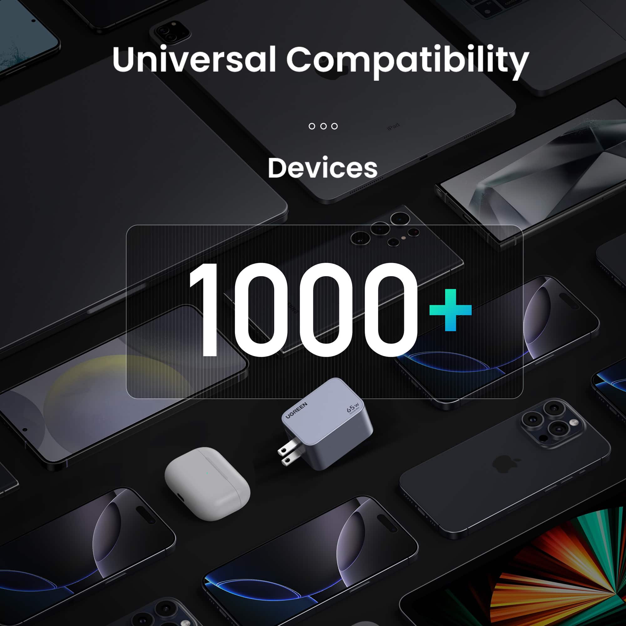 • Power your entire tech ecosystem with the UGREEN Nexode Pro 65W GaN Charger Set. This advanced wall charger uses innovative GaN technology to pack 65W of high-speed power into a remarkably compact block. It features two USB-C ports and one USB-A port, allowing you to fast charge your MacBook, iPad, iPhone, and Samsung Galaxy devices simultaneously. The included 100W USB-C to C cable ensures you get maximum performance. With a foldable plug and intelligent safety features, the Nexode Pro is the ultimate, travel-ready charging solution from UGREEN.