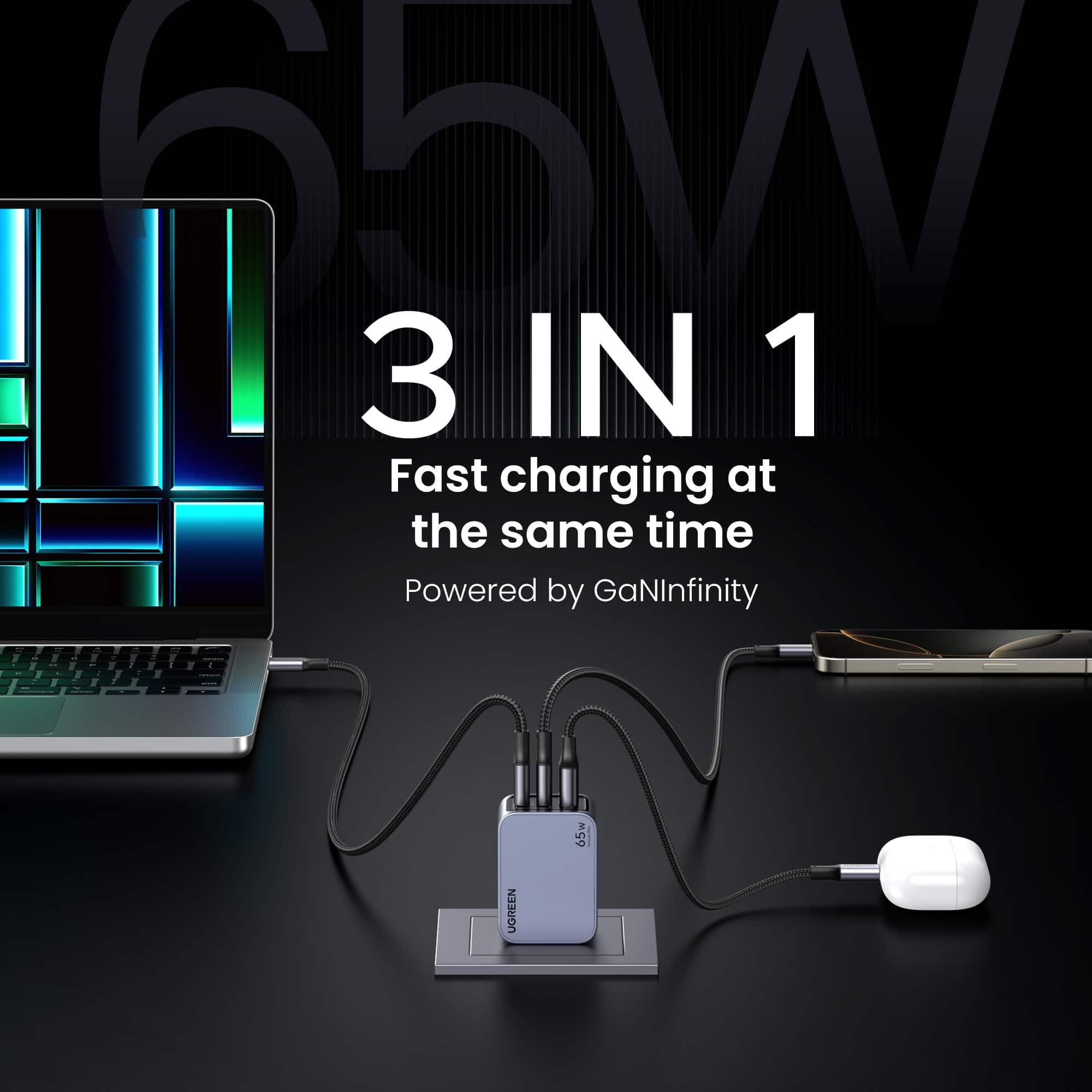 • UGREEN - Nexoede Pro 65W USB-C Charger Set, PPS 3-Port Compact Foldable GaN Charger for MacBook P...