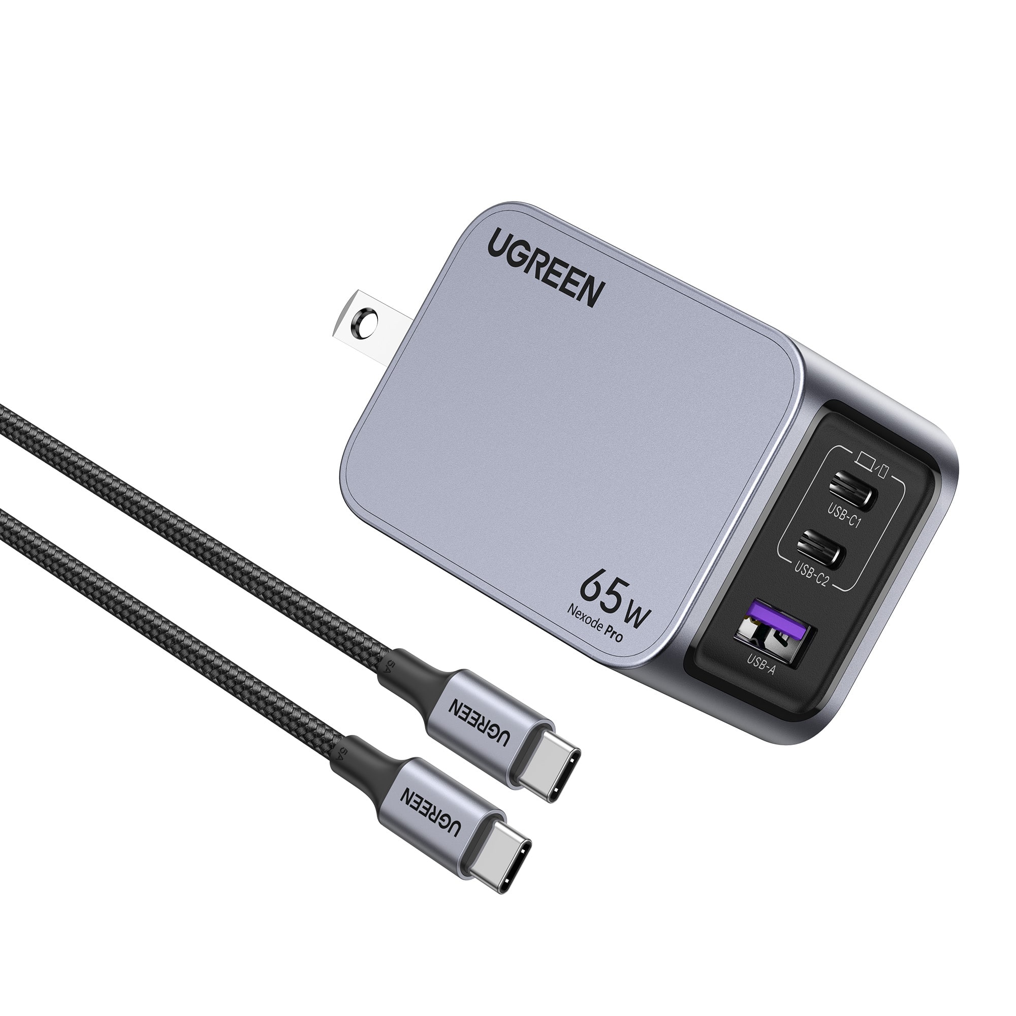 UGREEN - Nexoede Pro 65W USB-C Charger Set, PPS 3-Port Compact Foldable GaN Charger for MacBook P...