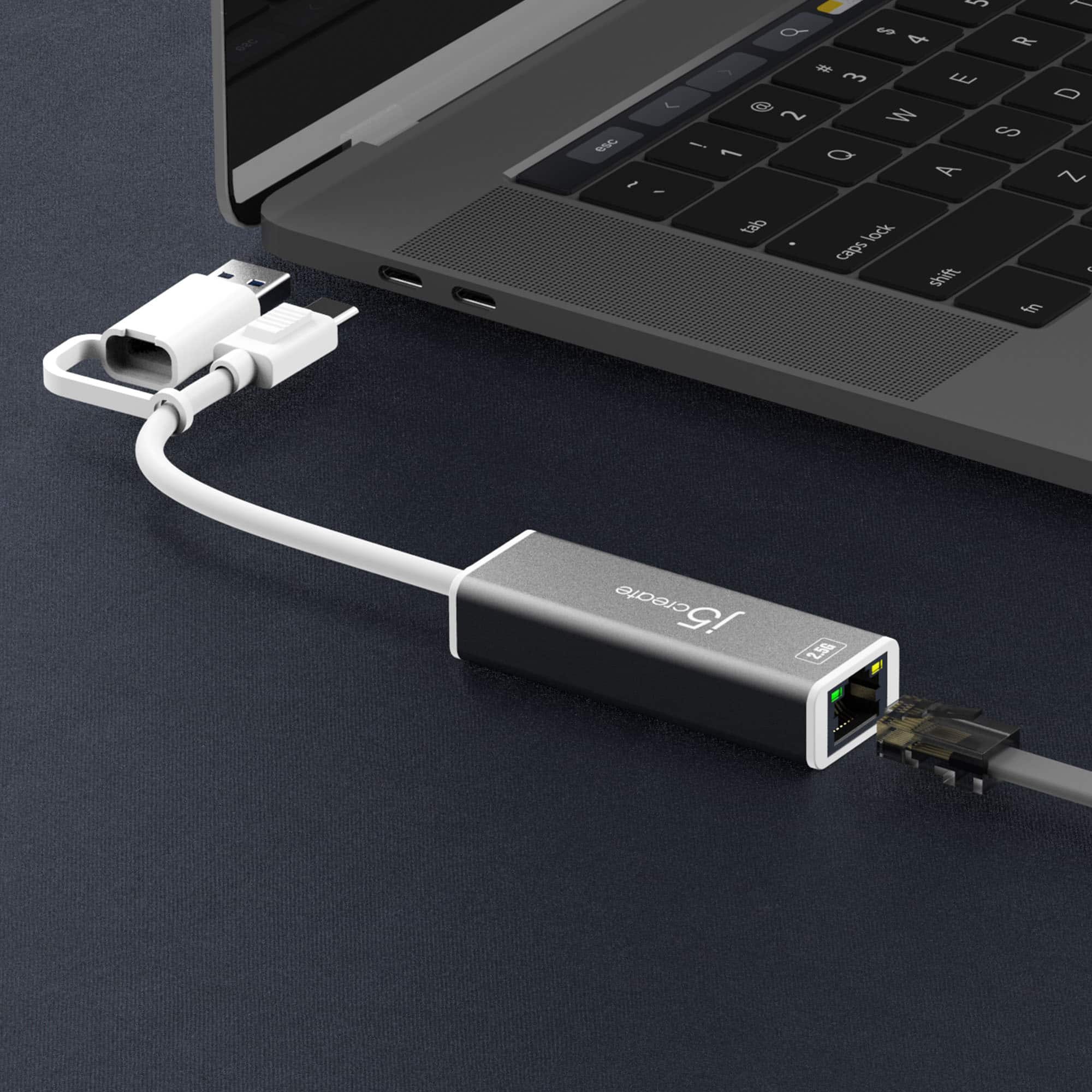 • j5create’s JCE145C is a simple external adapter that plugs into the USB-C® port on your laptop or MacBook® . The JCE145 is an optimal solution if you do not have an Ethernet port or if you just want to increase your network speed. A USB™ Type-A adapter is connected for added compatibility with devices that lack the Type-C port.