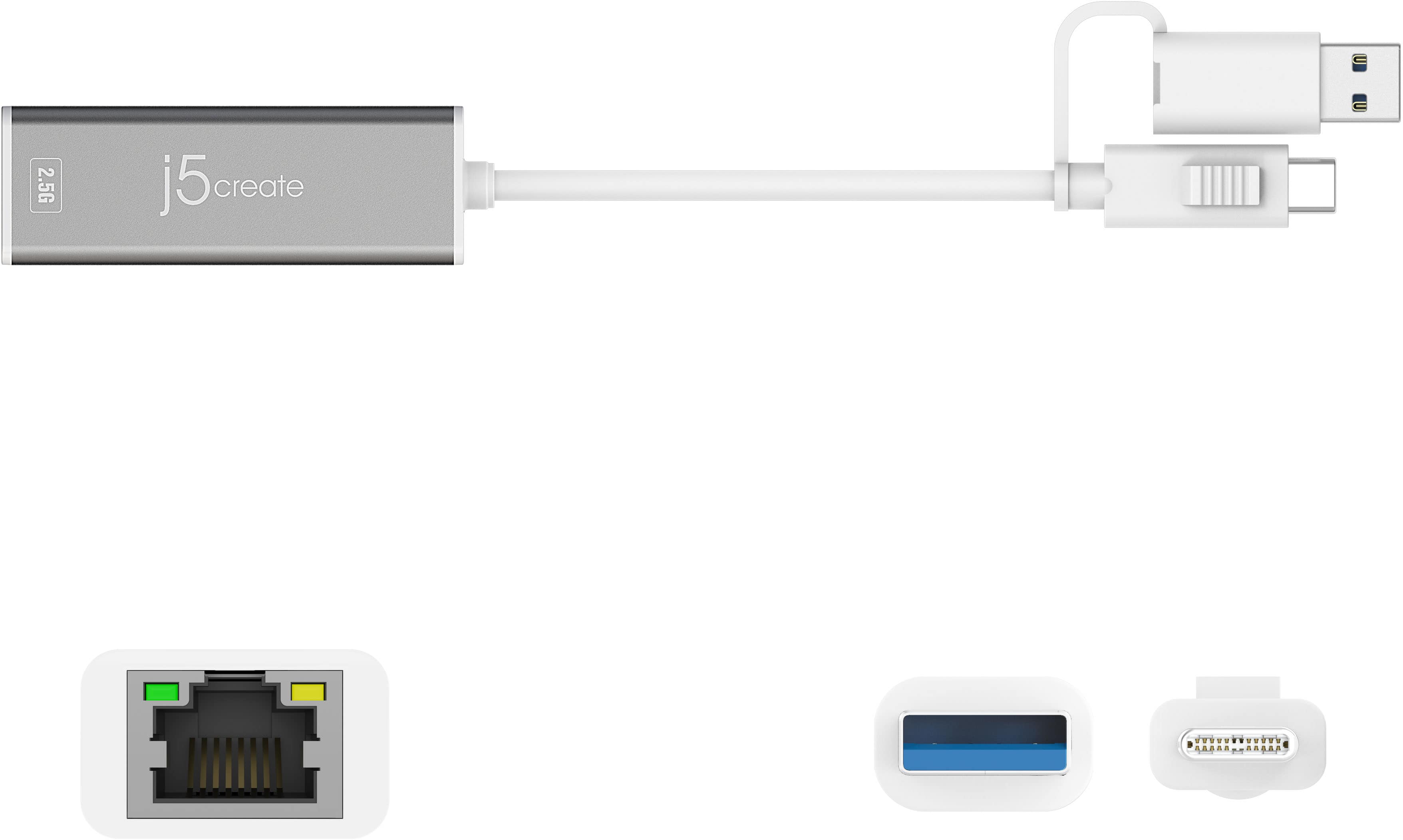 j5create - USB-C® to 2.5 Gigabit Ethernet Adapter, with 3.93" cable - Space Gray