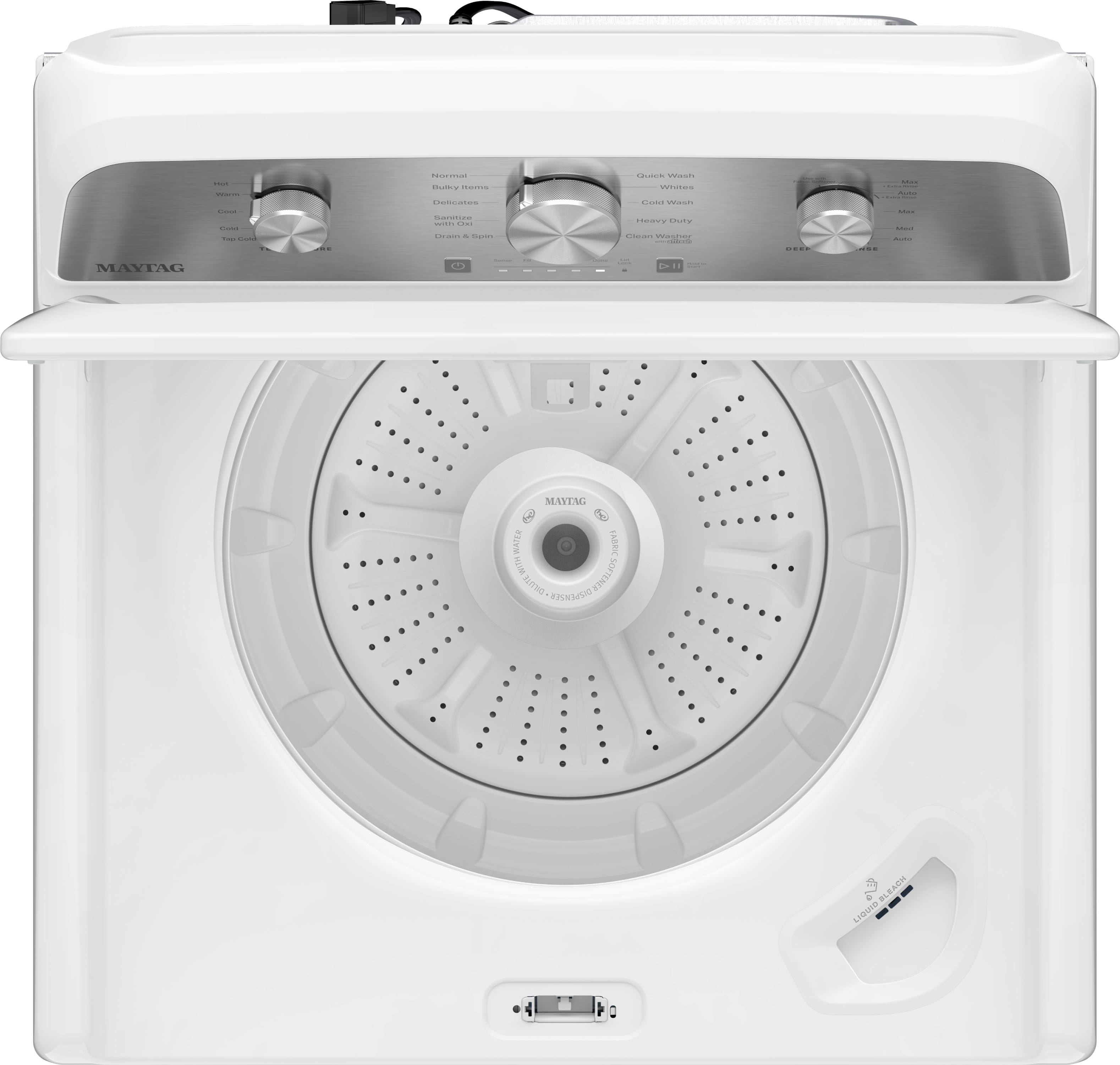 • This 4.2 Cu. Ft. Capacity top load washer from Maytag delivers the stain-fighting power that’s built to handle tough loads. Help ensure clothes get submerged and cleaned with the Deep Fill Option, while the Power agitator knocks the stubborn out of stains with a 360-degree wash action. Two Extra Rinse Options help thoroughly clean clothes by rinsing away messes and detergent. The durable 3-knob console along with the 10-Year Limited Parts Warranty* on the Drive Motor and Stainless Steel Wash Basket ties it all together to help you easily power through laundry day.