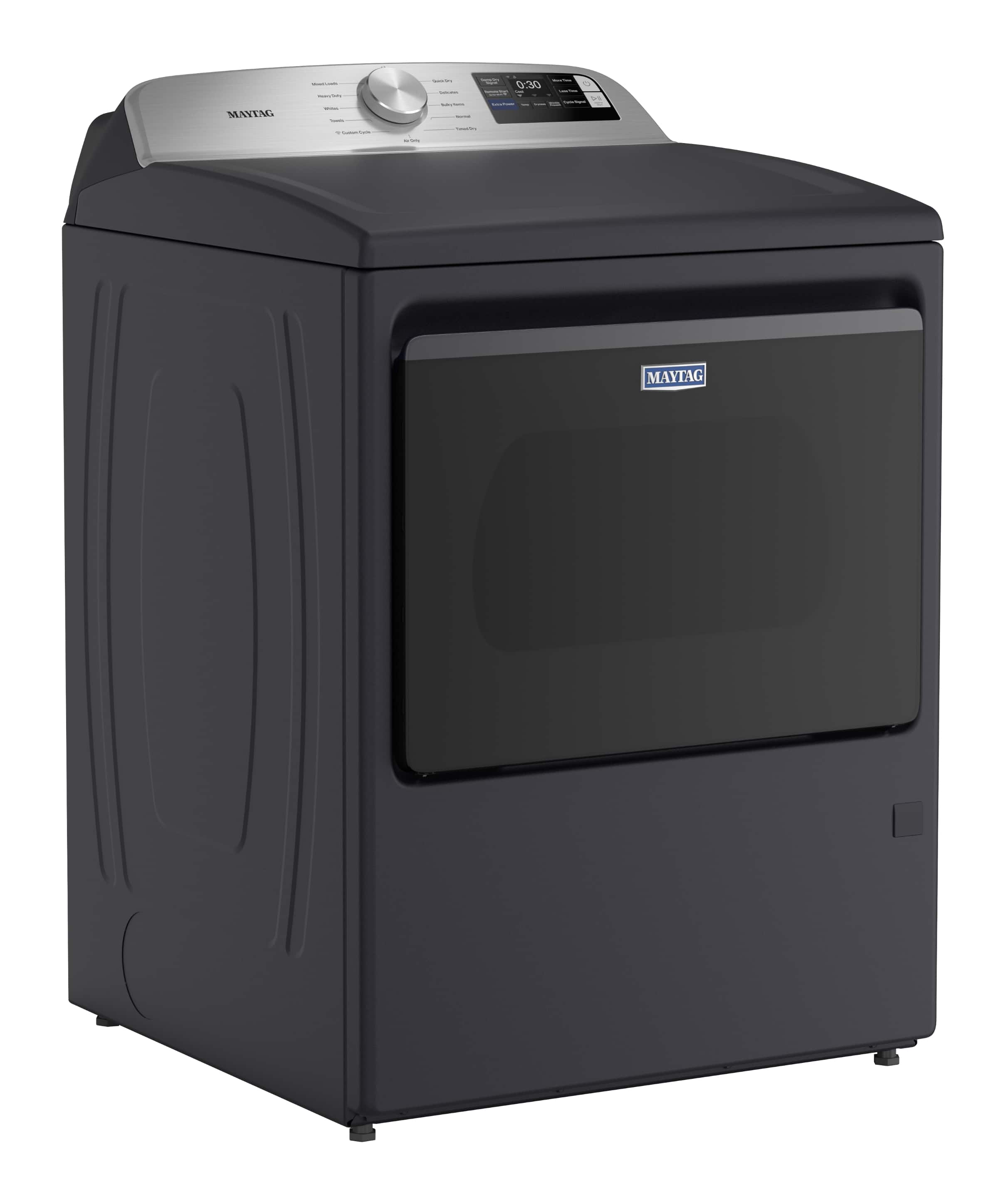 • Extra Power boosts drying power to get thick fabrics drier the first time.* Advanced Moisture Sensing monitors inside moisture and air temperatures to help evenly dry loads. Dry a small load fast with the Quick Dry cycle, which pairs nicely with the Quick Wash cycle on select Maytag washers to get clothes ready in no time. The Wrinkle Prevent option runs for up to 150 minutes after the cycle has ended to keep wrinkles from forming as the dryer continues to tumble. Smart features help you stay in control and efficiently manage laundry from anywhere.** Use the Maytag app to remotely start or stop your appliance and get end of cycle notifications so no load is left behind. Plus, troubleshoot select issues to avoid unnecessary service calls. *Results may vary based on load size and type. **WiFi & App Required. Features subject to change. Details & privacy info at maytag.com/connect. Appliance must be set to remote enable.