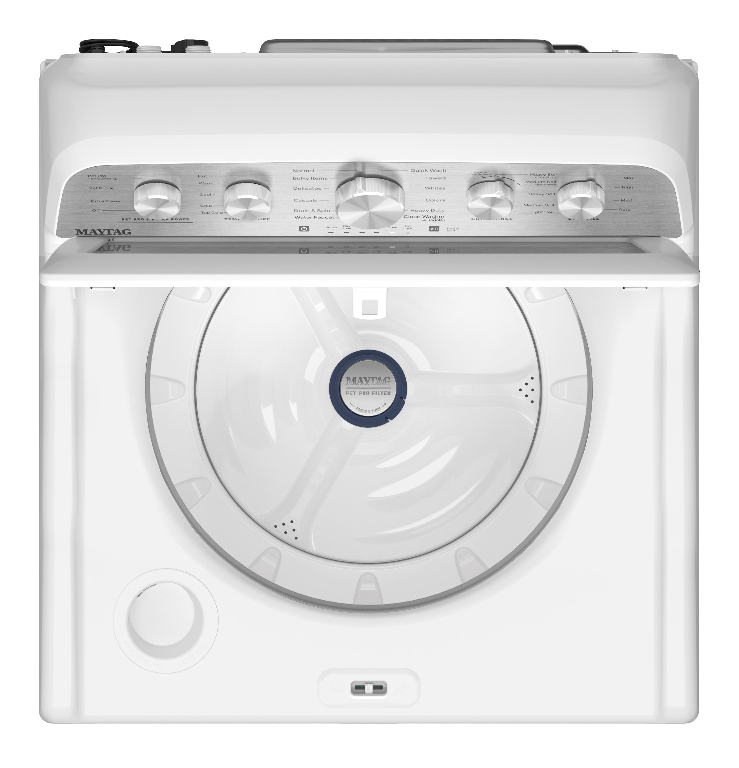 • Get a clean you can see with the Maytag Pet Pro washer that's built to trap and remove pet hair. Press the Pet Pro option to activate the built-in Pet Pro Filter to visibly remove pet hair. Extra Power boosts stain fighting on any wash cycle so you can walk away while stains wash away. The Deep Fill option delivers more water when you want it with your choice of deeper water levels, while the built-in water faucet delivers a quick rinse or a long soak leaving clothes ready for the wash cycle