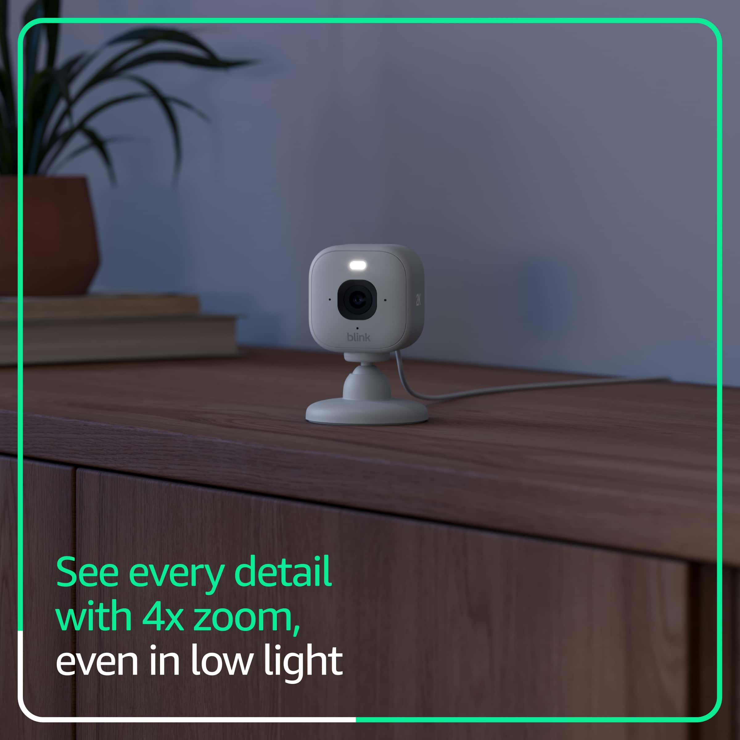 • Mini 2K+ is our most powerful, compact plug-in security camera yet, delivering stunning 2K video resolution, a 138° field of view, and 4x zoom for detailed footage day or night. With AI smart detection (Blink Subscription Plan required), it can identify people or vehicles and help deter unwanted activity using a built-in security siren. Plus, you’ll get crisp two-way audio, color night vision with the spotlight, and seamless control from the Blink app.