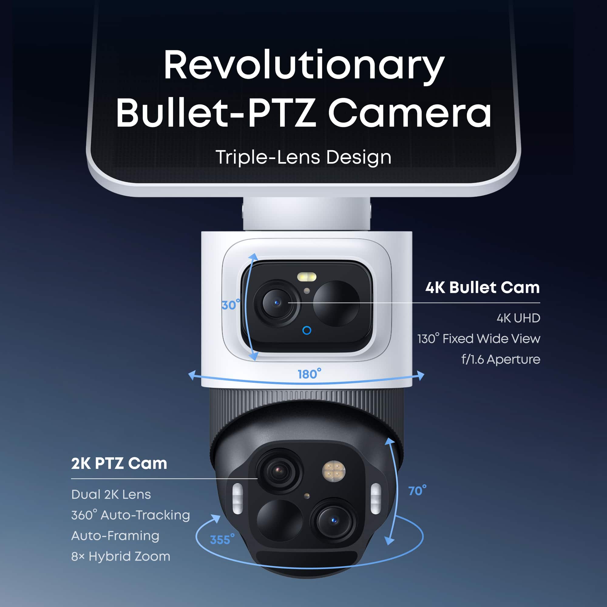 • eufy - eufyCam S4 Triple Lens Wireless Solar Security Camera with 360° View, Auto Tracking, No Mo...
