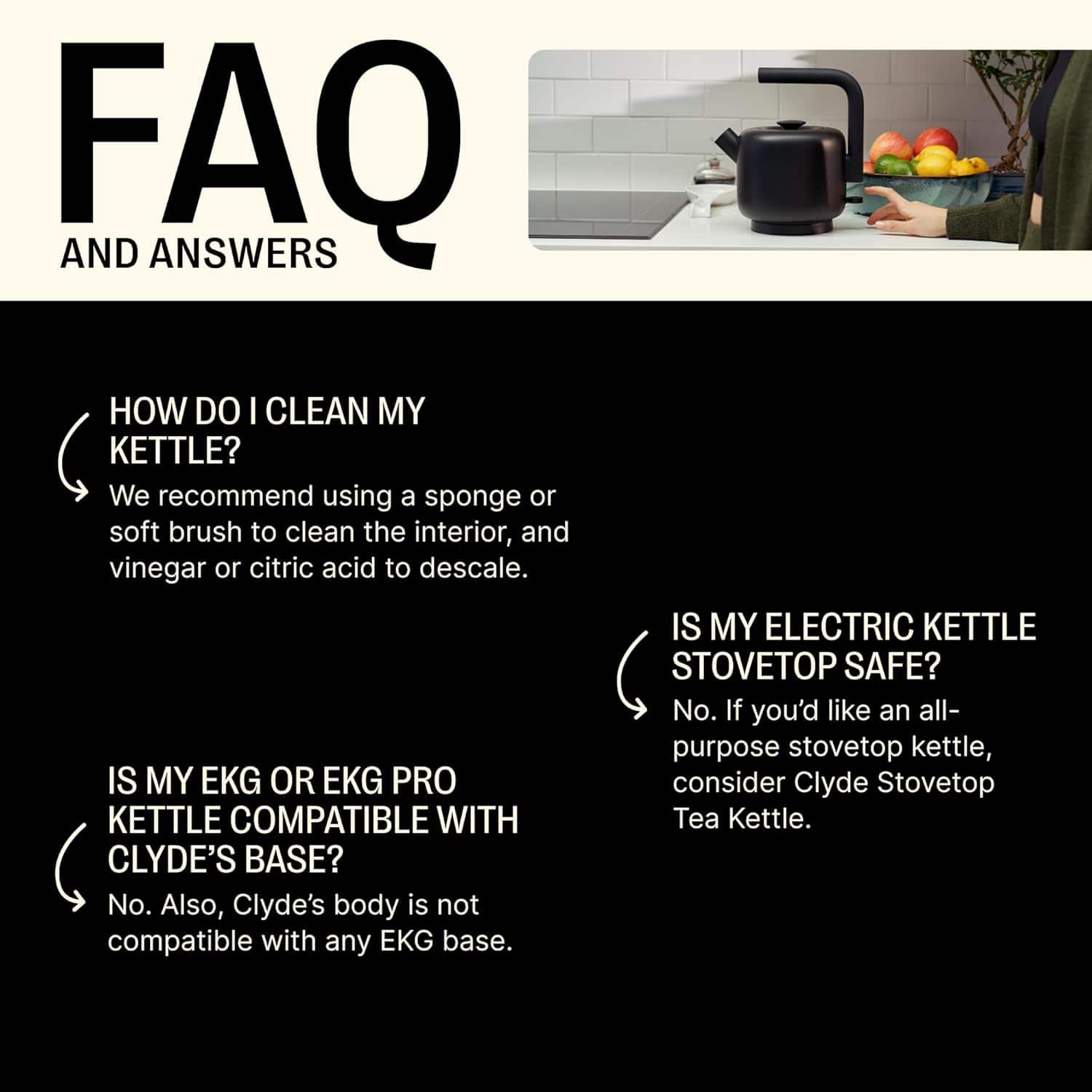• Your daily driver is now a countertop centerpiece. With a 1.5 liter capacity, a wide mesh spout, and a stunning silicone handle, Clyde is built for all-purpose use: tea, French press, cocoa, ramen, and all your kitchen creations.